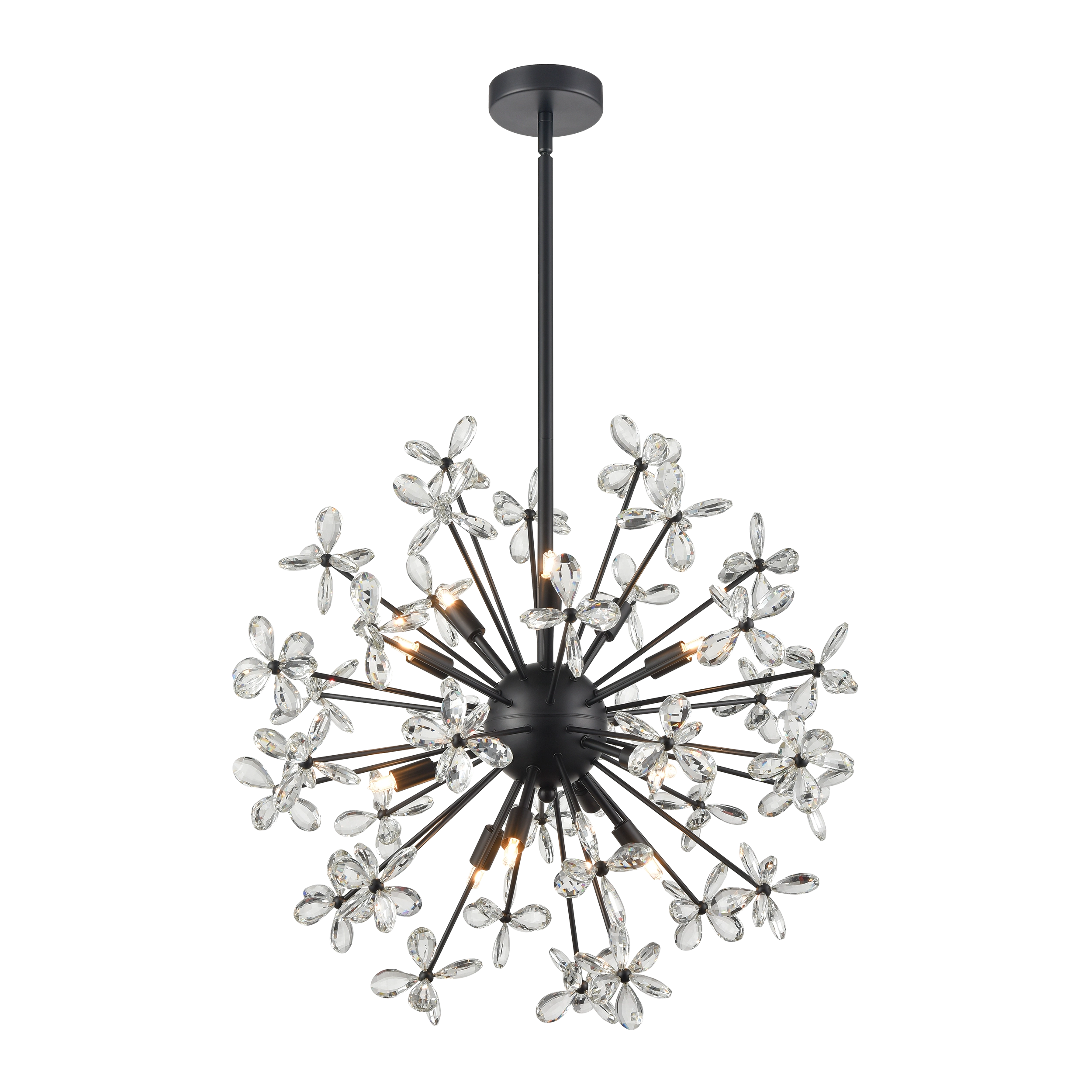 12-Light Floral Crystal Pedal Sputnik Matte Black Pendant Light.