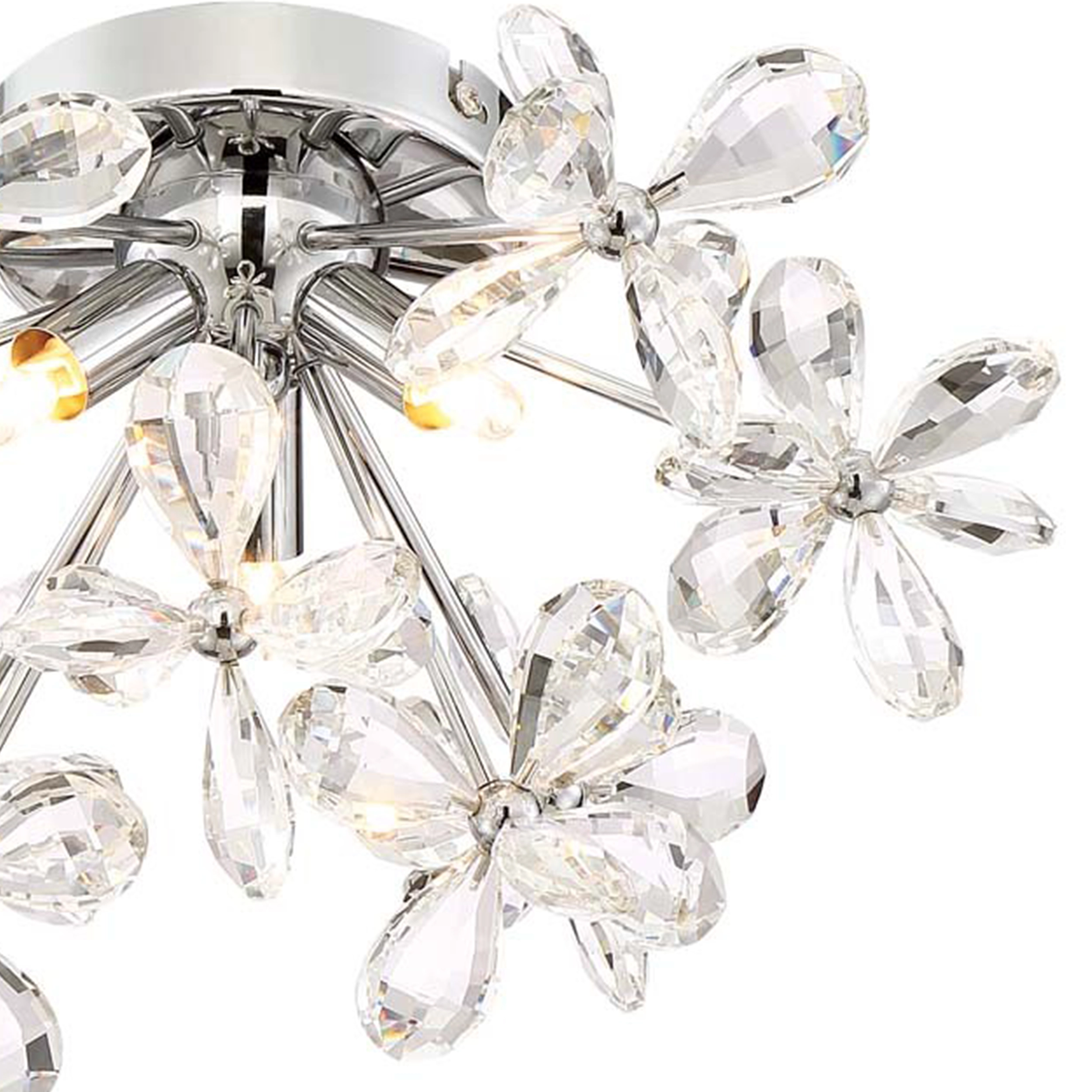 3-Light Floral Crystal Pedal Sputnik Chrome Flush Mount.
