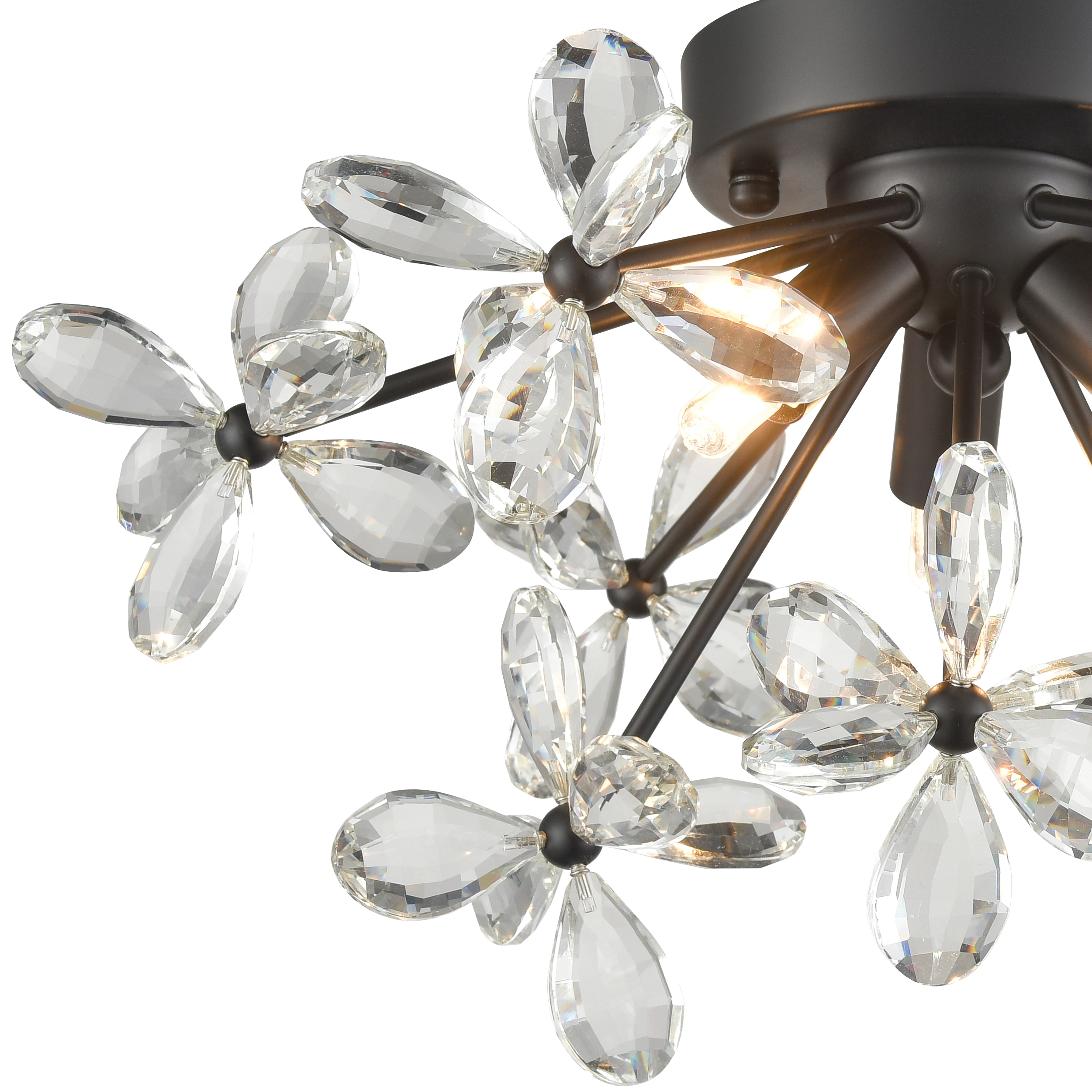3-Light Floral Crystal Pedal Sputnik Matte Black Flush Mount.