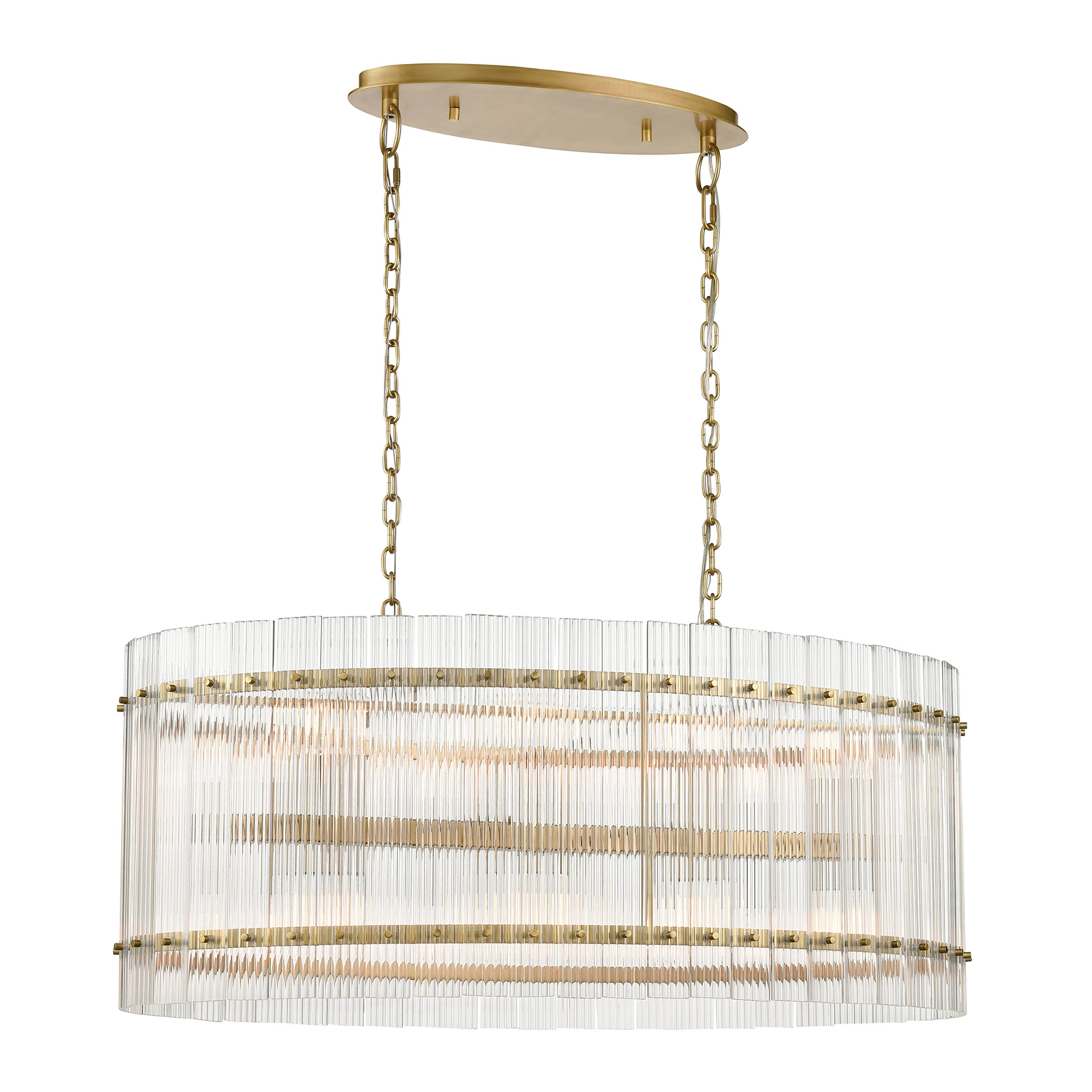 16-Light Fluted Glass Panel Aged Brass Oval Dining Chandelier.