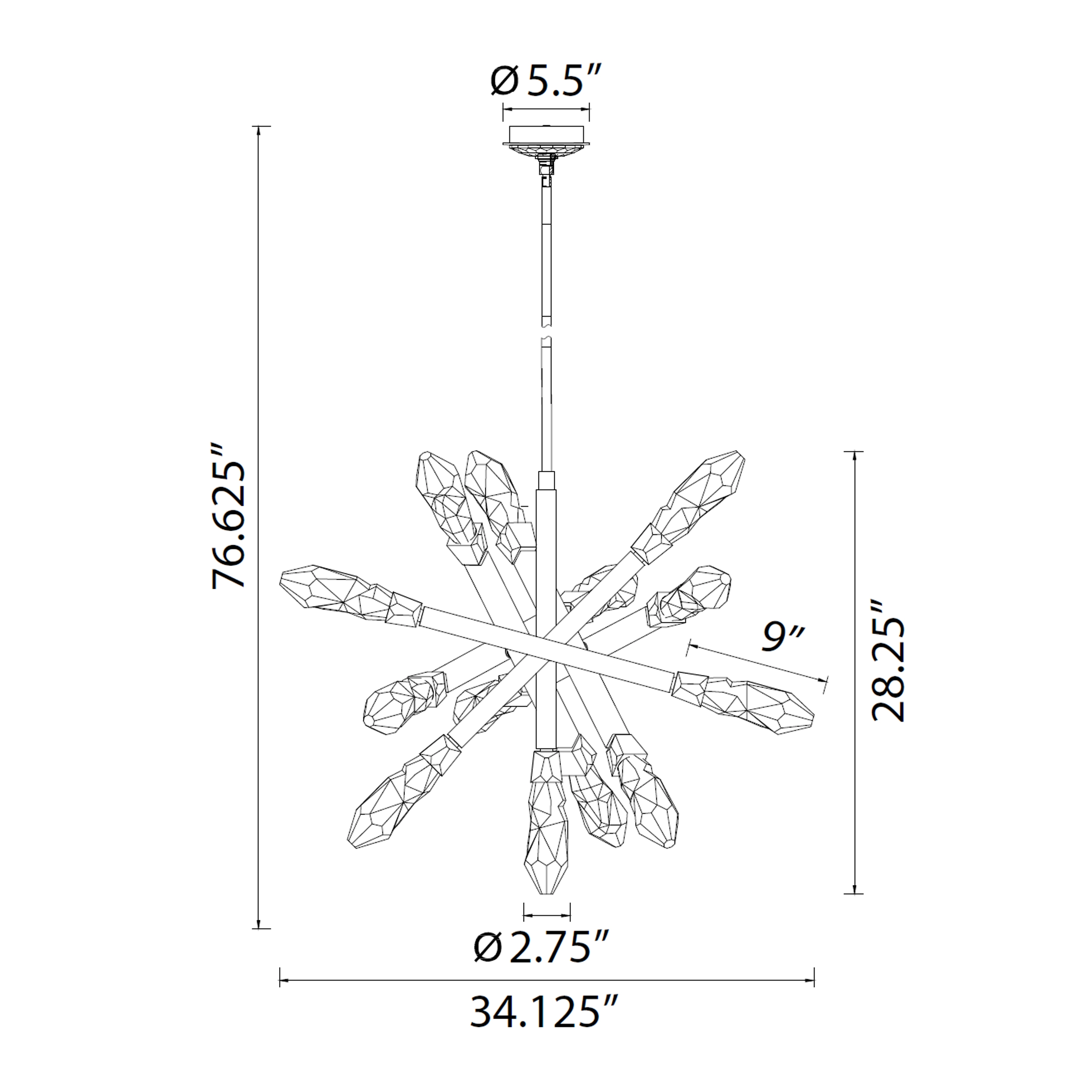 | Pendant Only | D-34.125" x H-28.25" | Weight | 55 lbs |