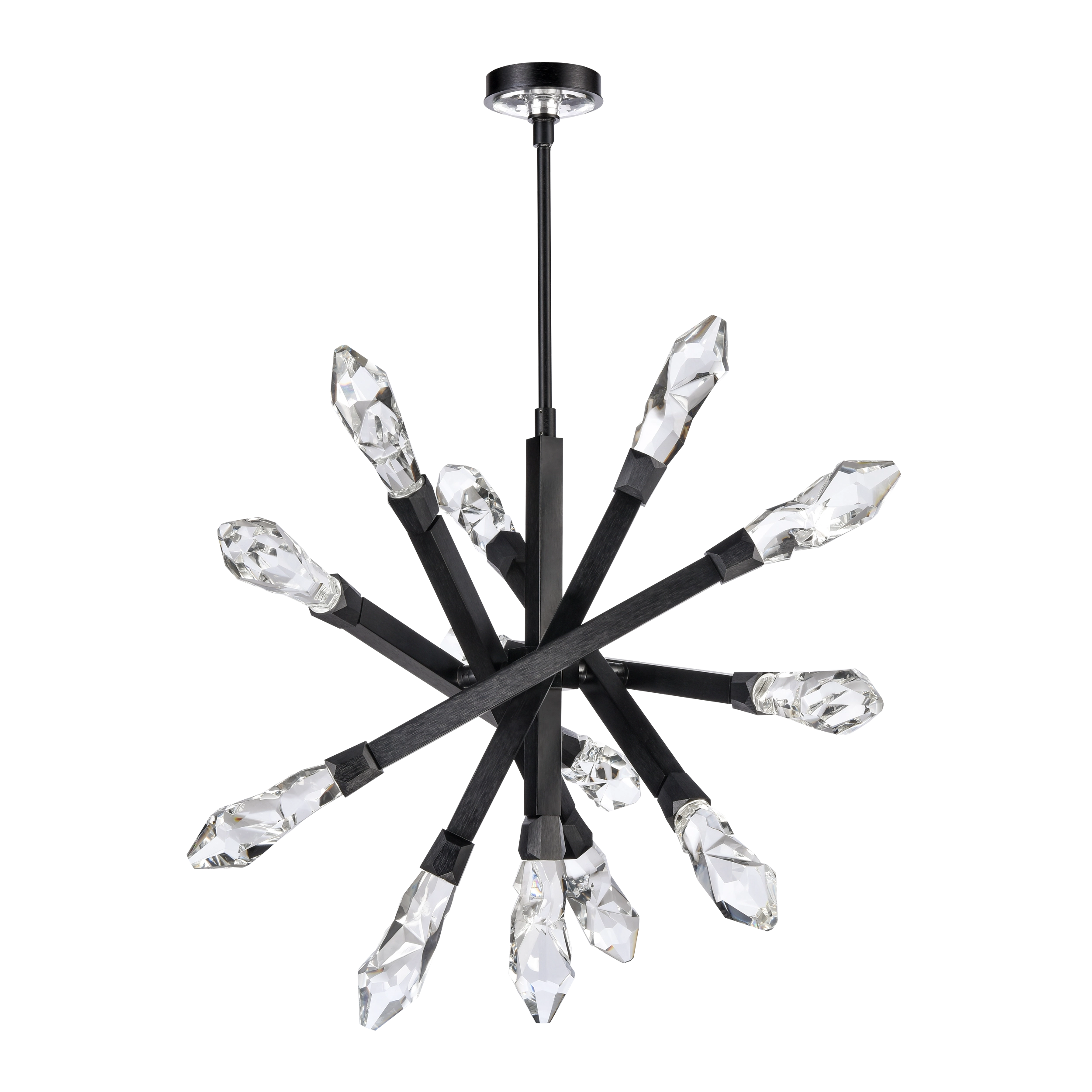 13-Light 34" Adjustable Sputnik Crystal Chandelier with inimitable crystals hand formed and polished, with every turn of the crystal being unique. Refined metal with our sleek satin brushed black finish. Integrated Replaceable LED with 3CCT 3000K, 3500K and 4000K.