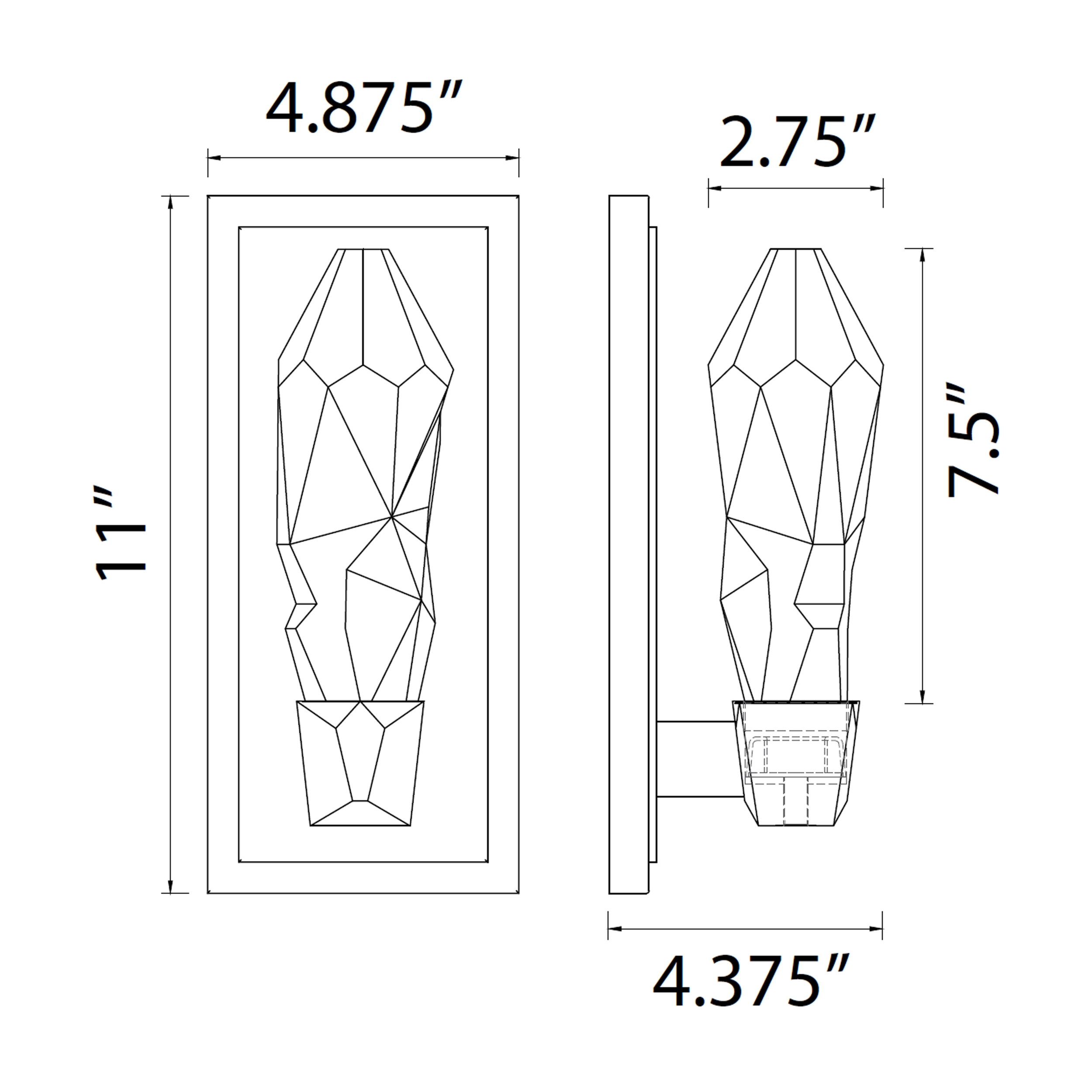 | Canopy | L-4.875" x H-11" x H-0.75" | Installed | W-4.875" x H-11" x E-4.375" |