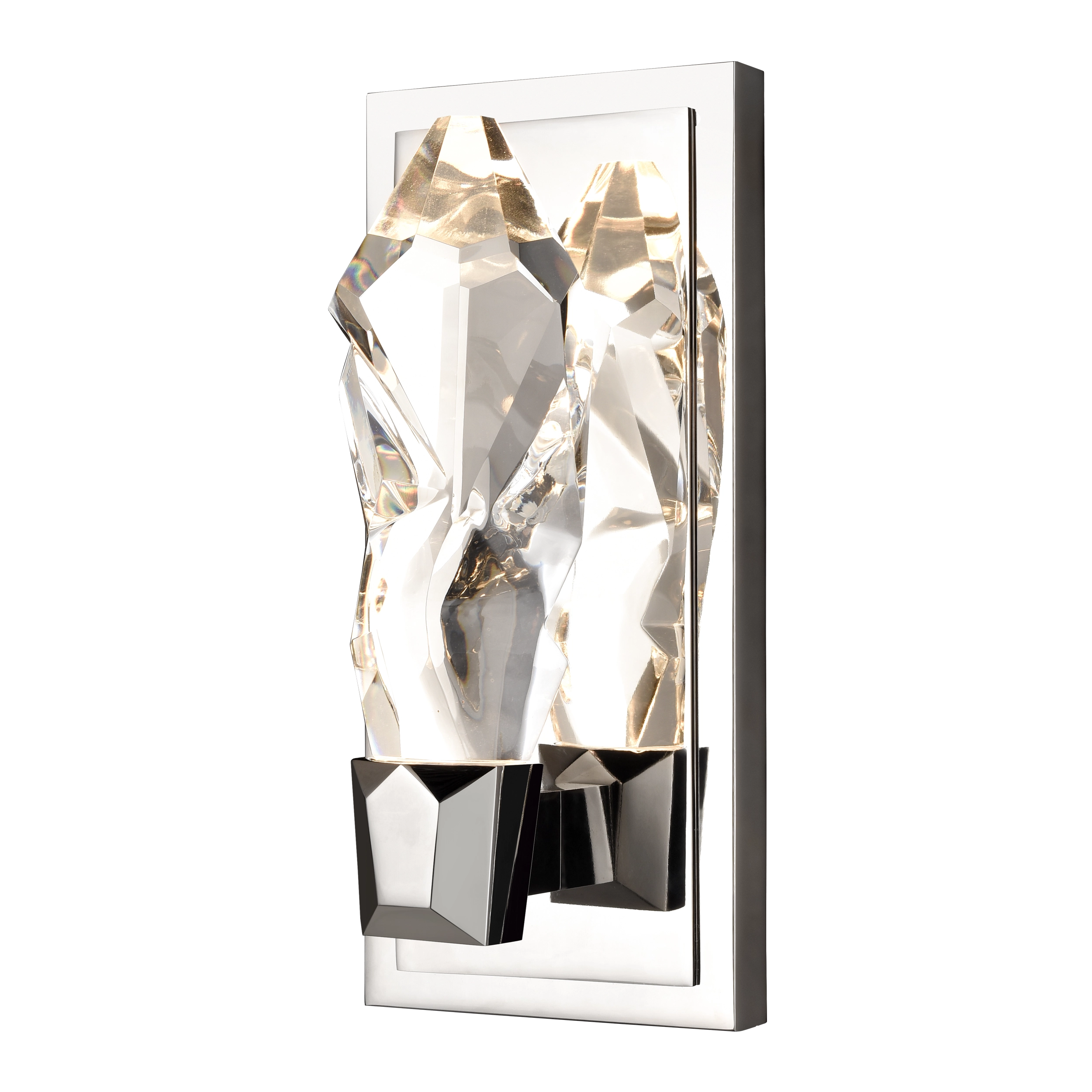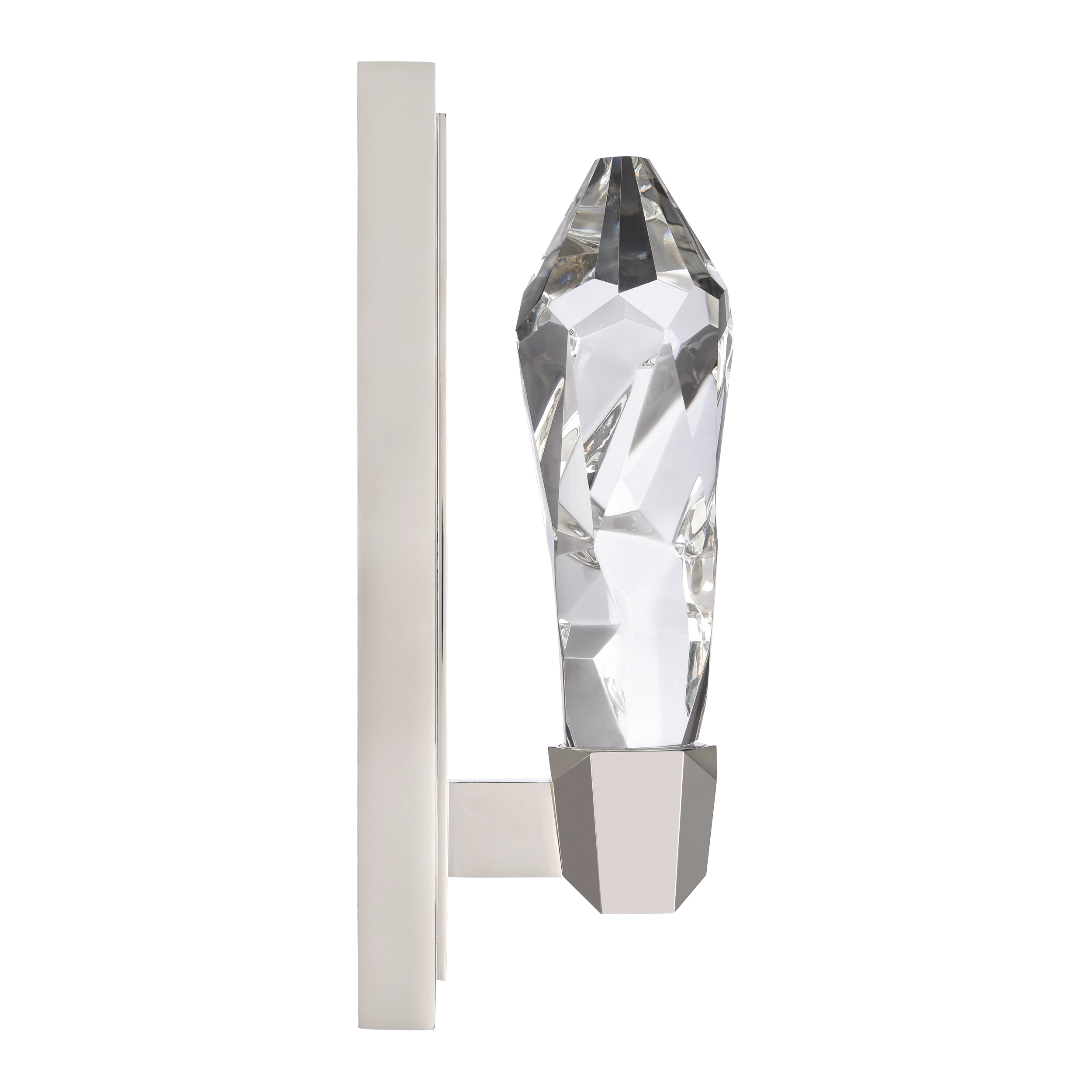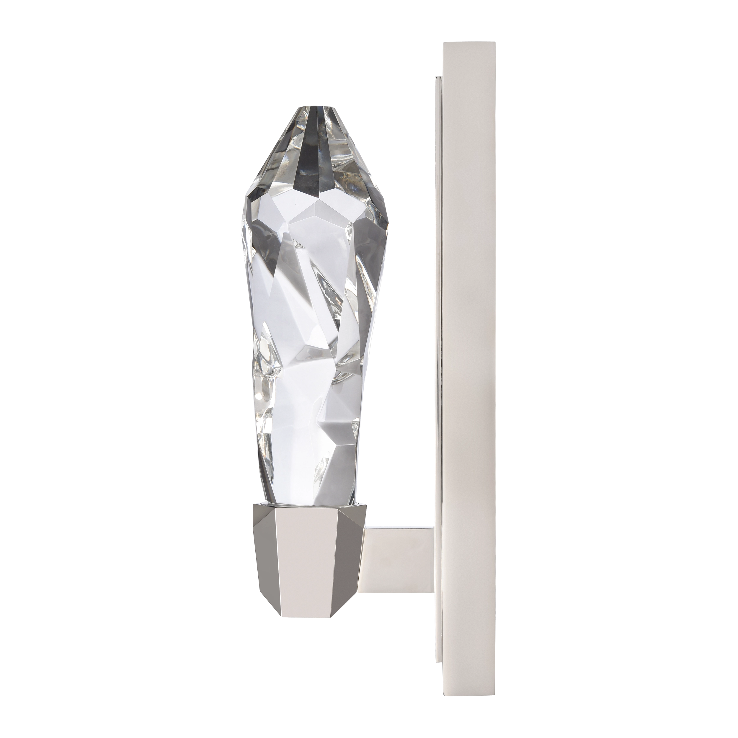 1-Light Inimitable Crystal Vertical Wall Sconce, hand formed and polished crystal, with every turn of the crystal being unique. Refined metal with our luxurious polished nickel finish. Integrated Replaceable LED with 3CCT 3000K, 3500K and 4000K.