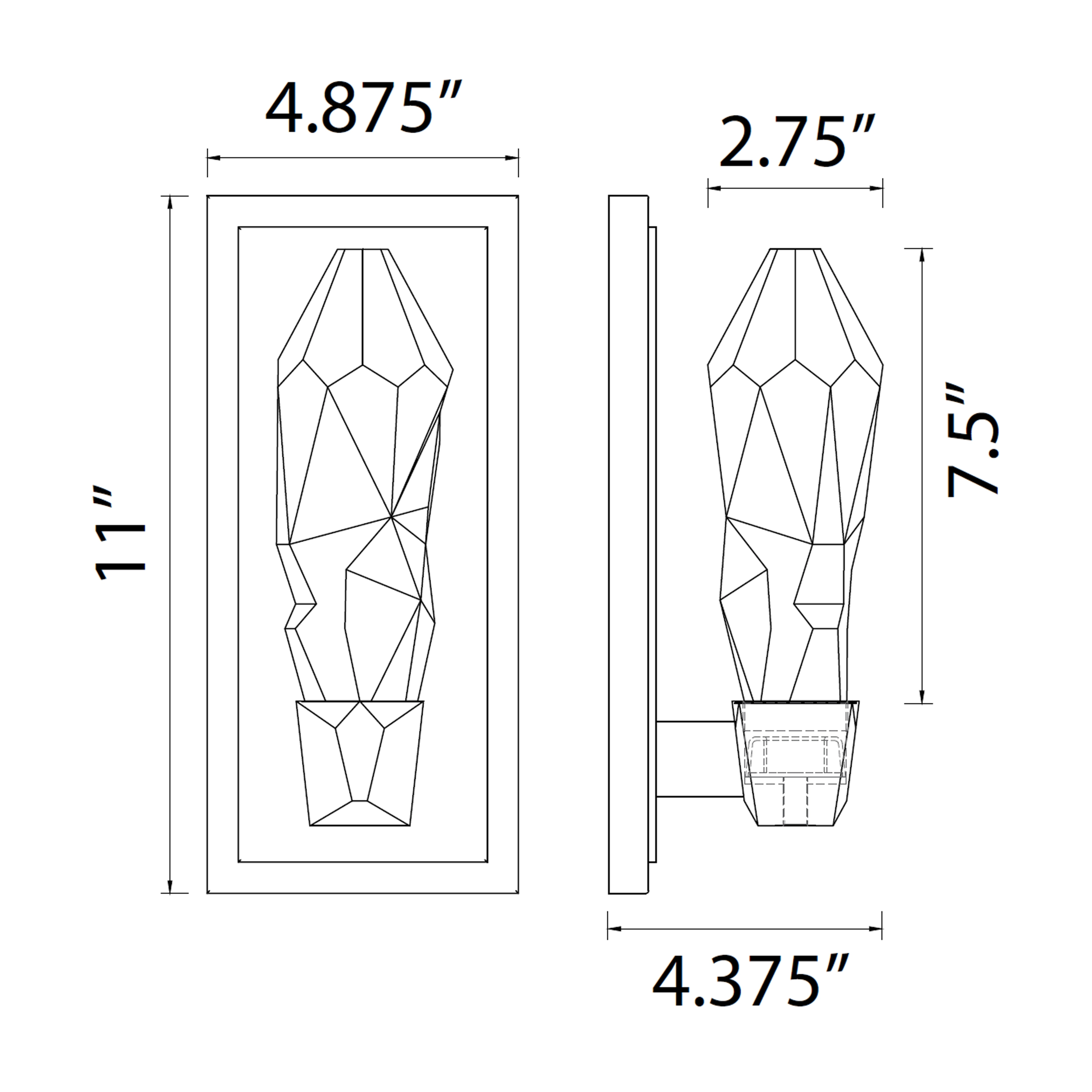 | Canopy | L-4.875" x H-11" x H-0.75" | Installed | W-4.875" x H-11" x E-4.375" |
