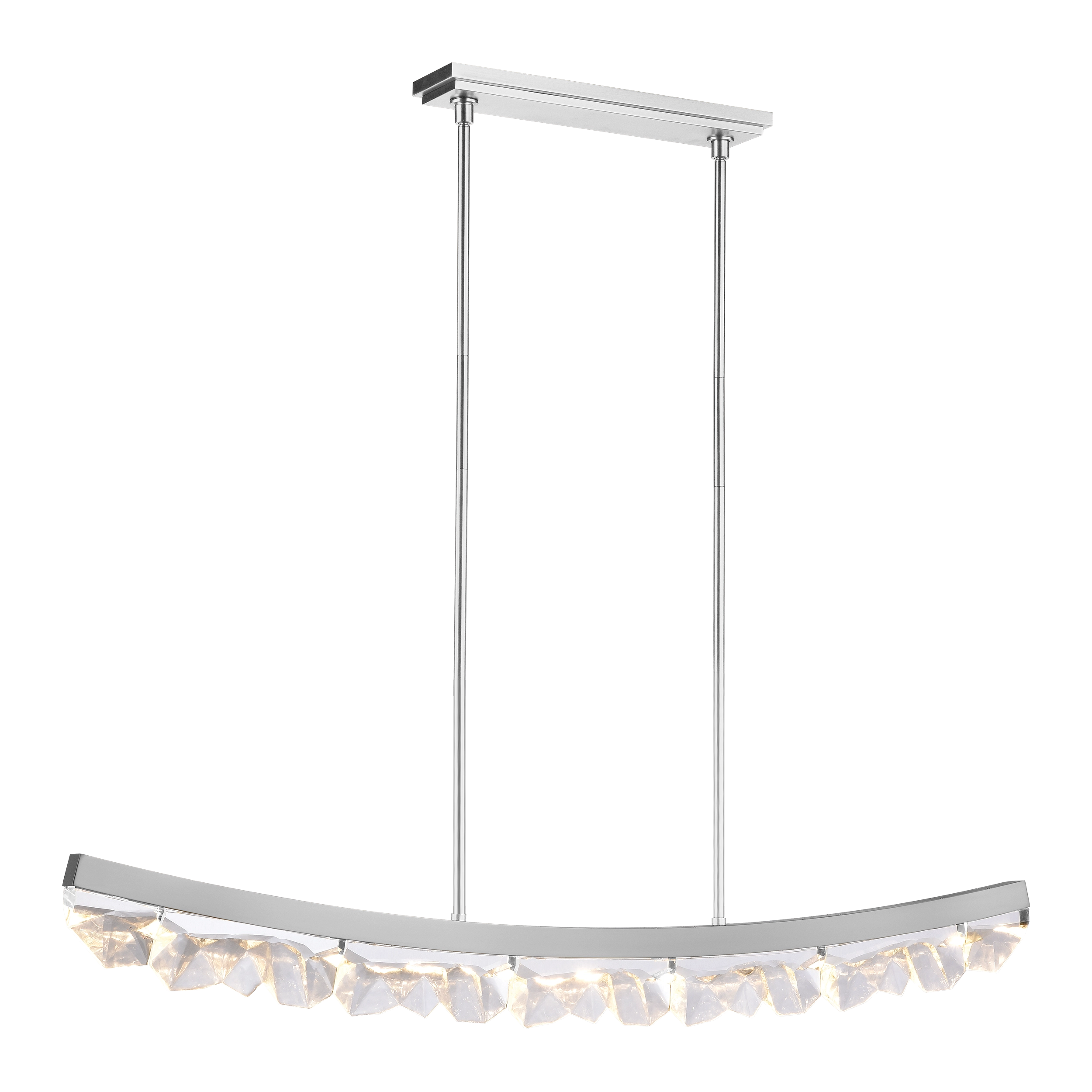 LED 57" Linear Crystal Pendant with unique sleek curved fire polished crystals from end to end. Heavy gauged refined metal with our luxurious polished nickel finish. Integrated Replaceable LED with 3CCT 3000K, 3500K and 4000K.