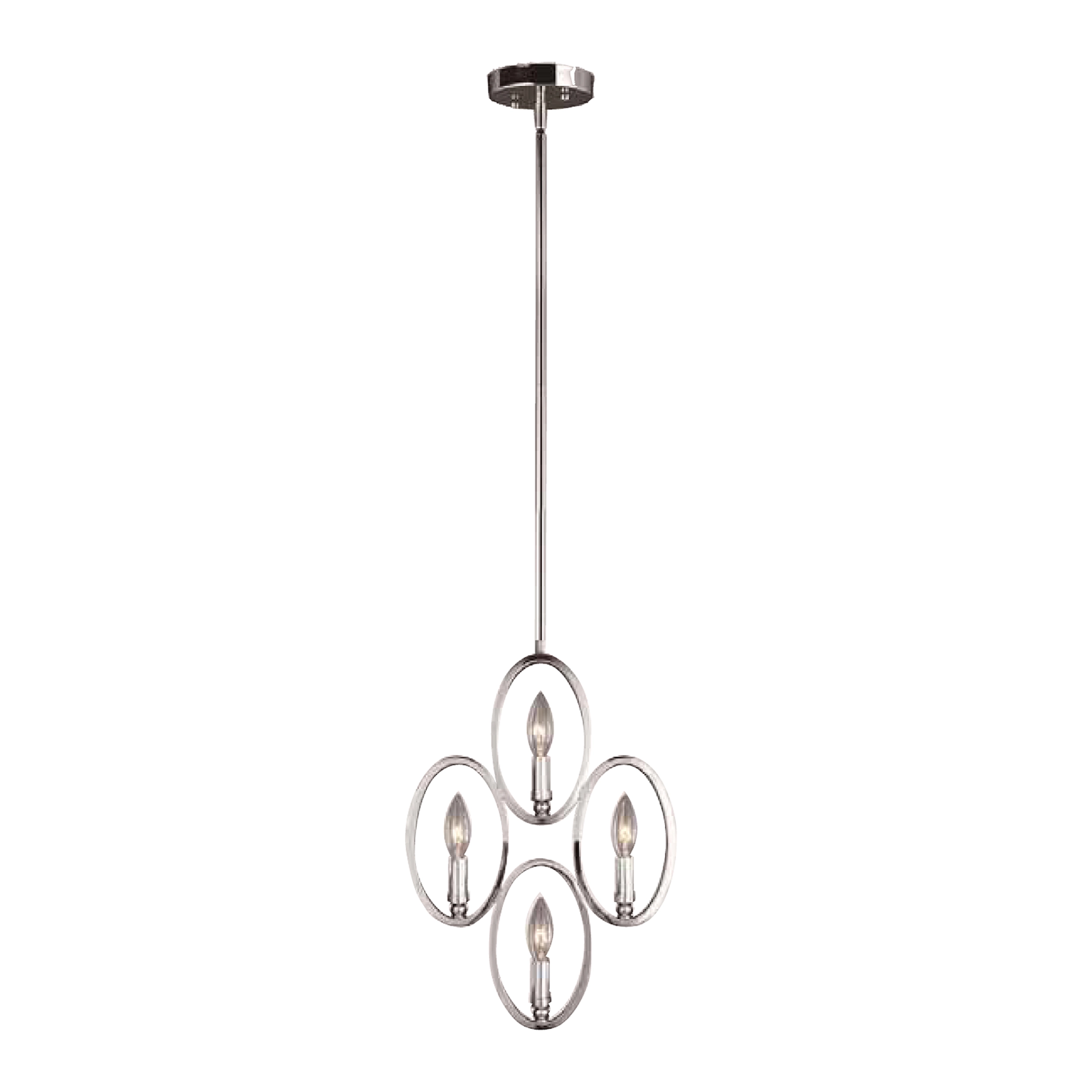 4-Light 12" Candle Vertical Pendant with Four Unique Combined Oval Rings and Polished Chrome Metal Finish.