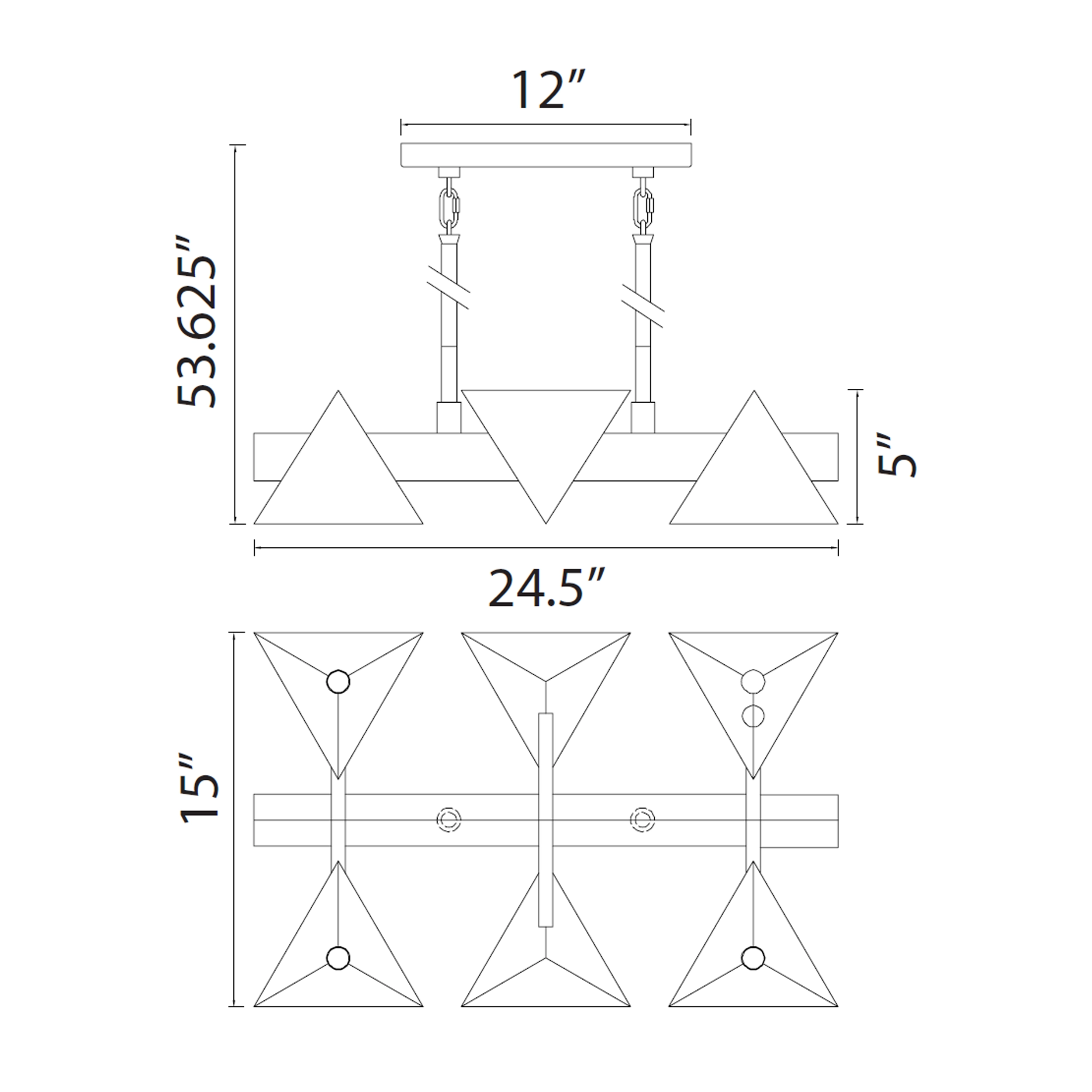 Avante 25″ 6-Light, Geometric Triangular Linear in Polished Nickel
