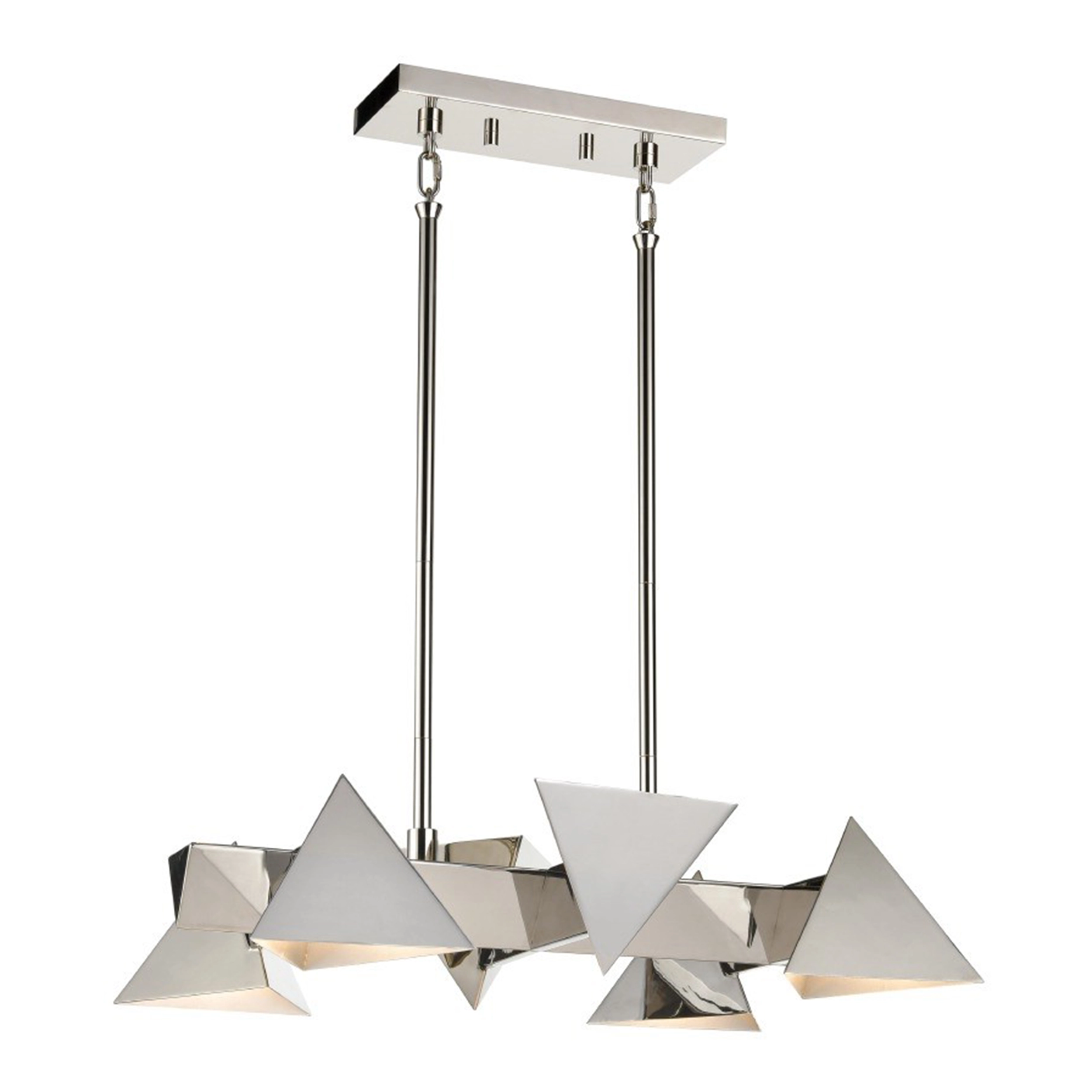 6-Light Geometric Reverse Triangular Polished Nickel Linear Pendant.