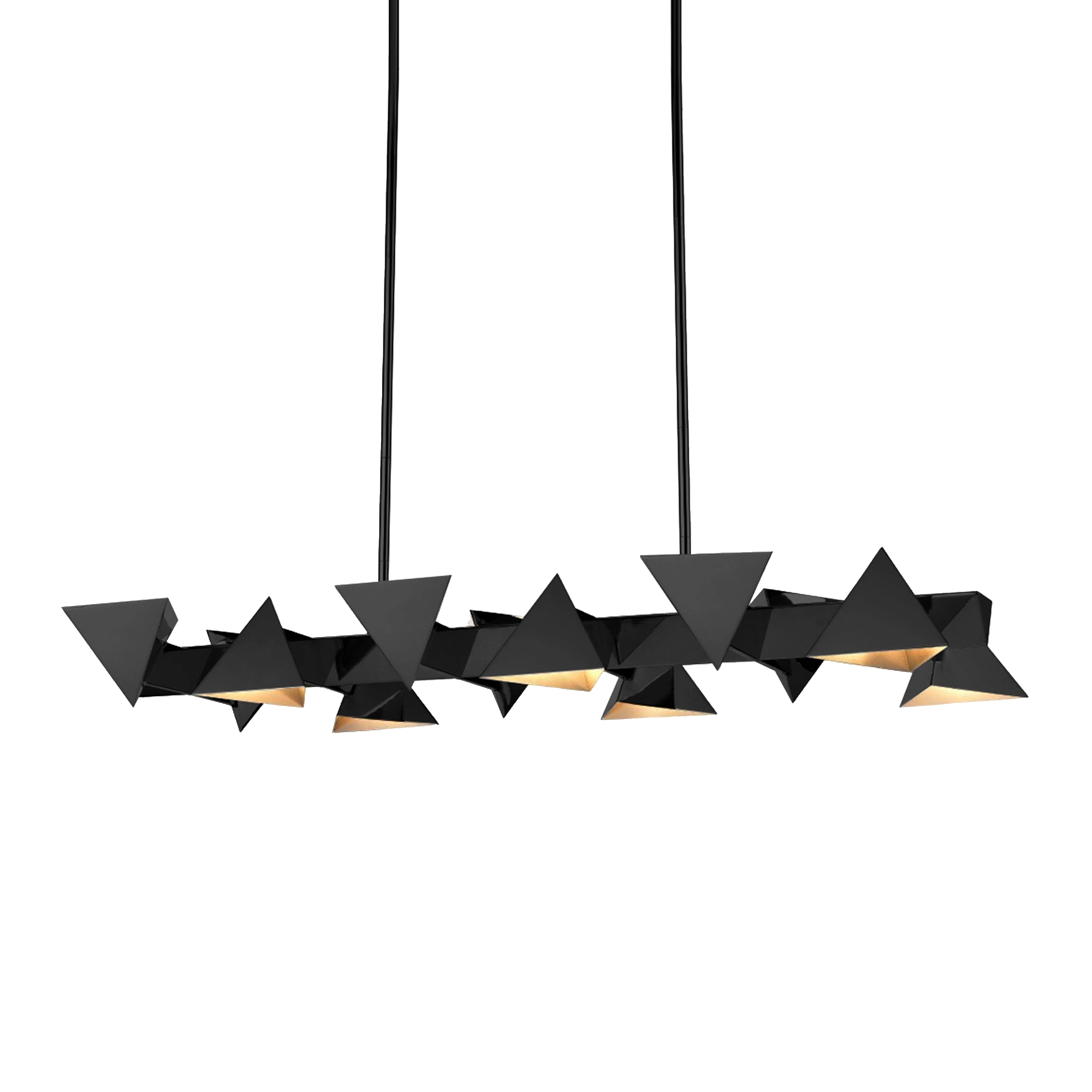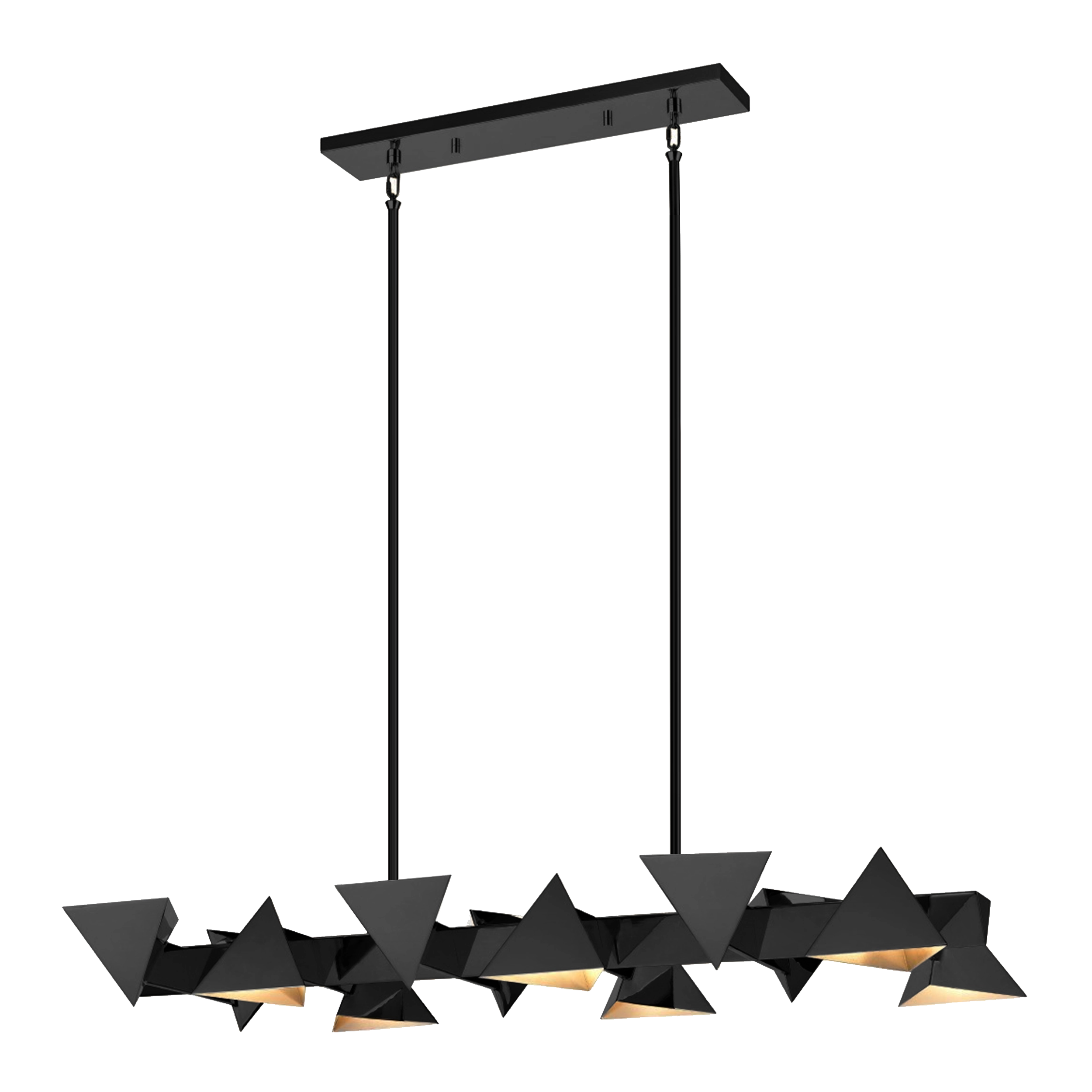12-Light Geometric Reverse Triangular Matte Black Linear Pendant.