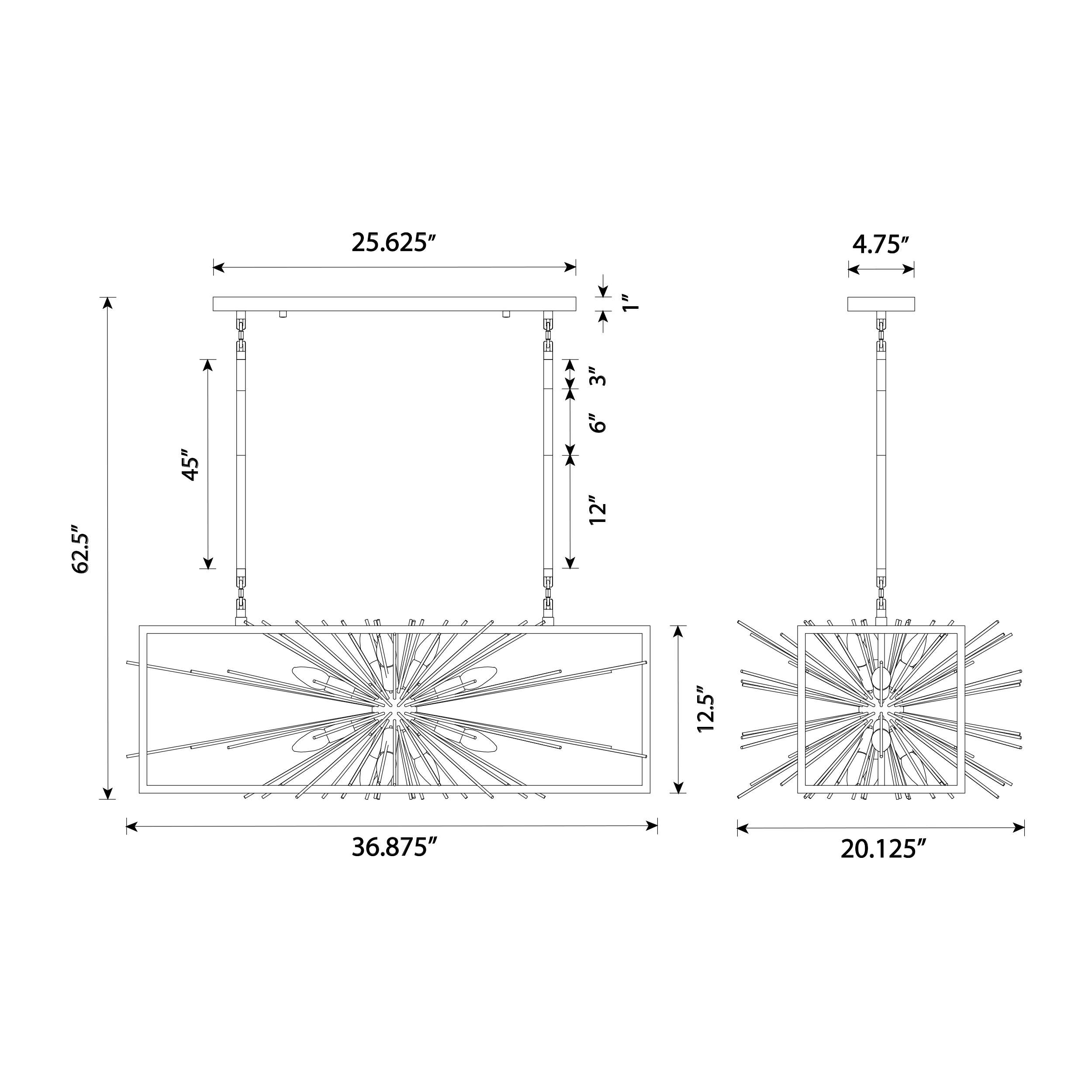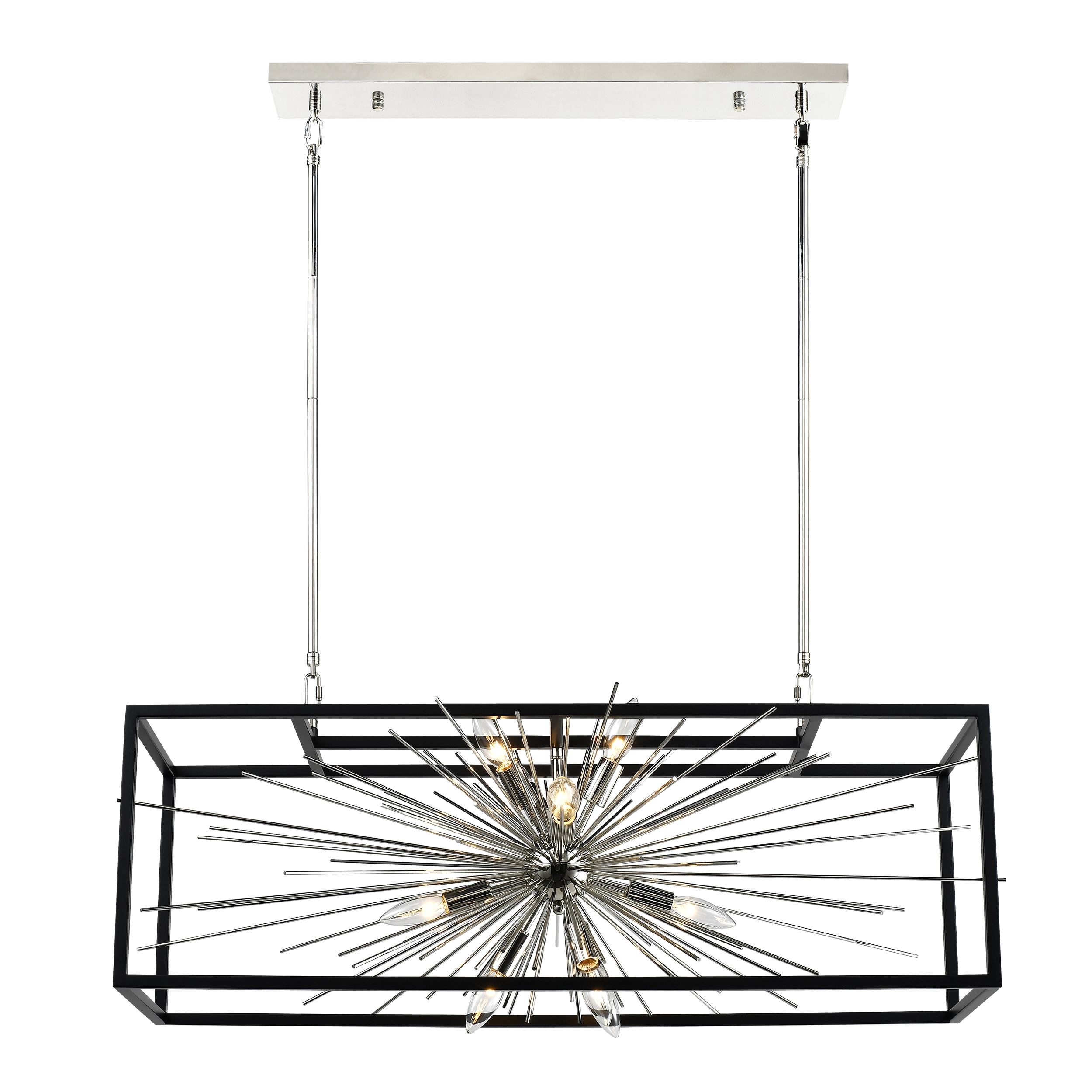 Burst 37″ 10-Light, Geometric Rectangular Sputnik in Nickel & Black