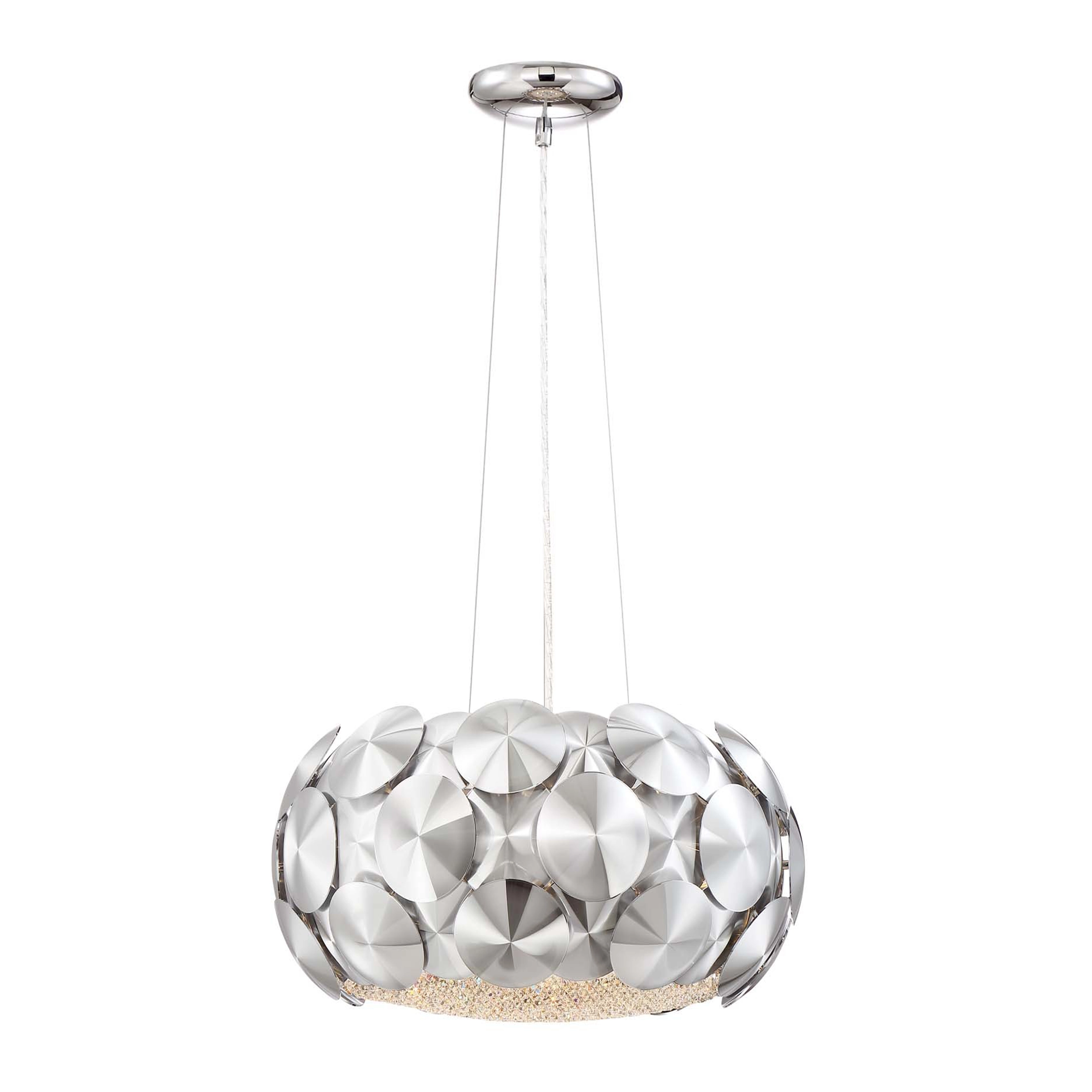 | Shade Details | Mini semi-dome brushed chrome metal discs overlapping to create a unique oblong drum style shade. |