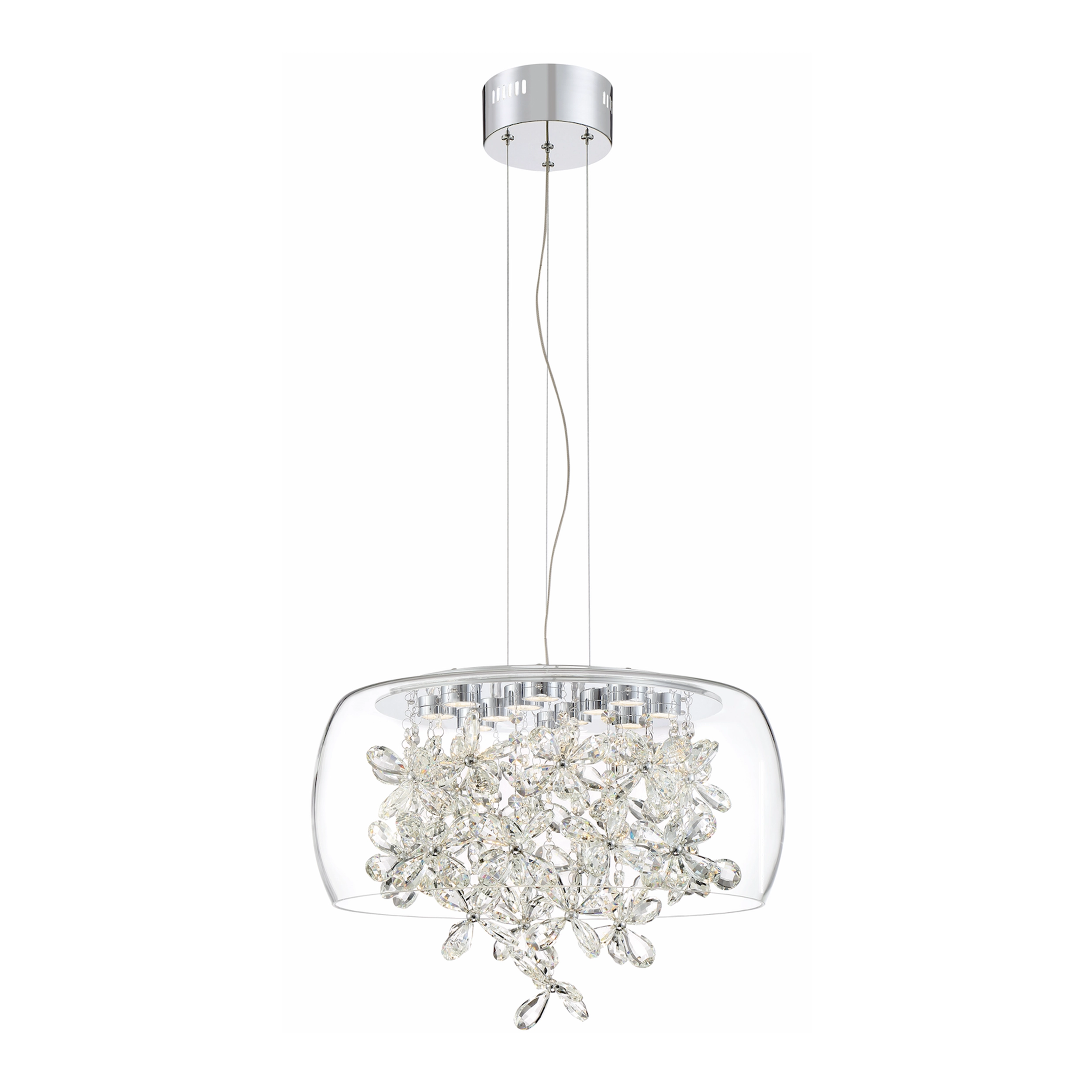 LED 20" Clear Glass Dome Shade with Clear Butterfly Crystal Stranded Chandelier.