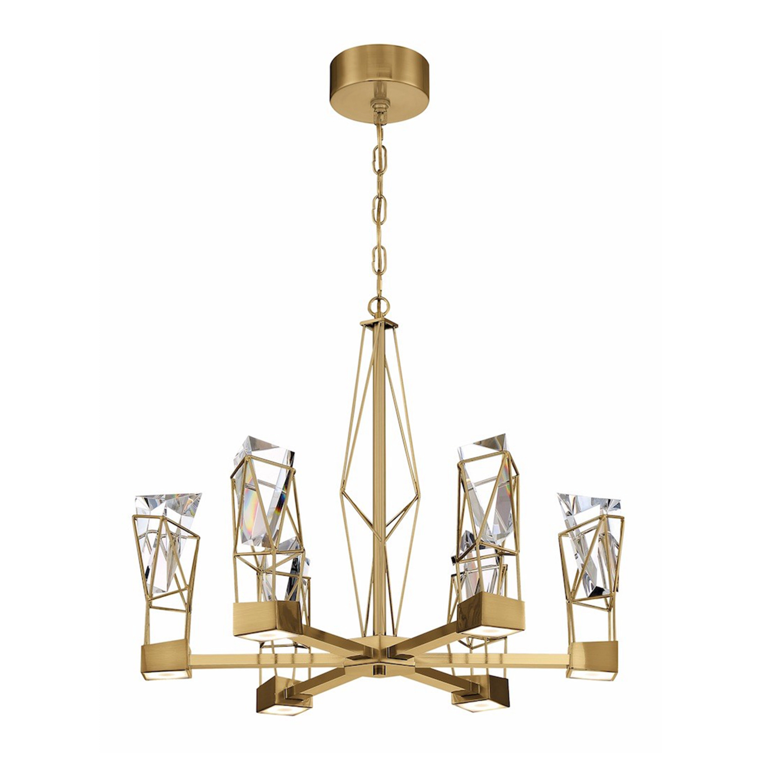 Gem 24″ Geometric Crystal LED Chandelier in Aged Brass