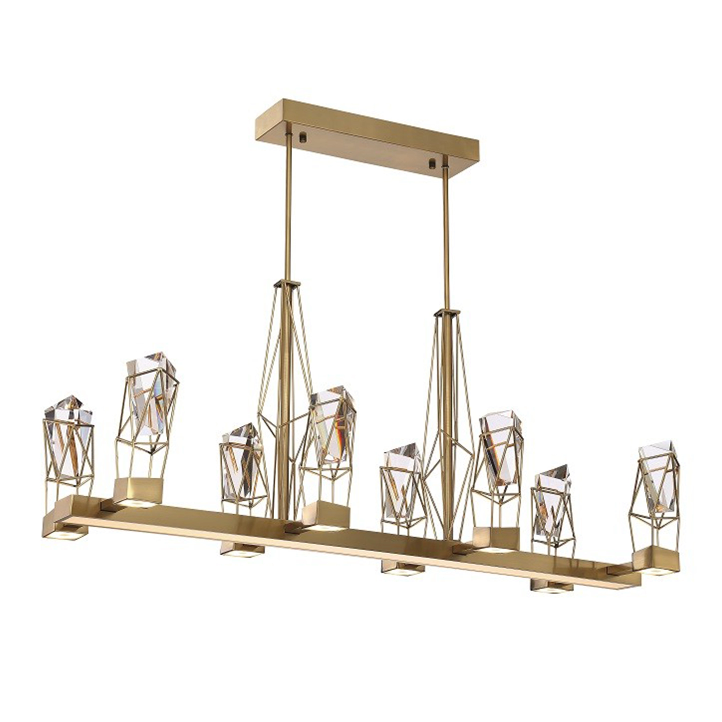Gem 24″ Geometric Crystal LED Linear Pendant in Aged Brass