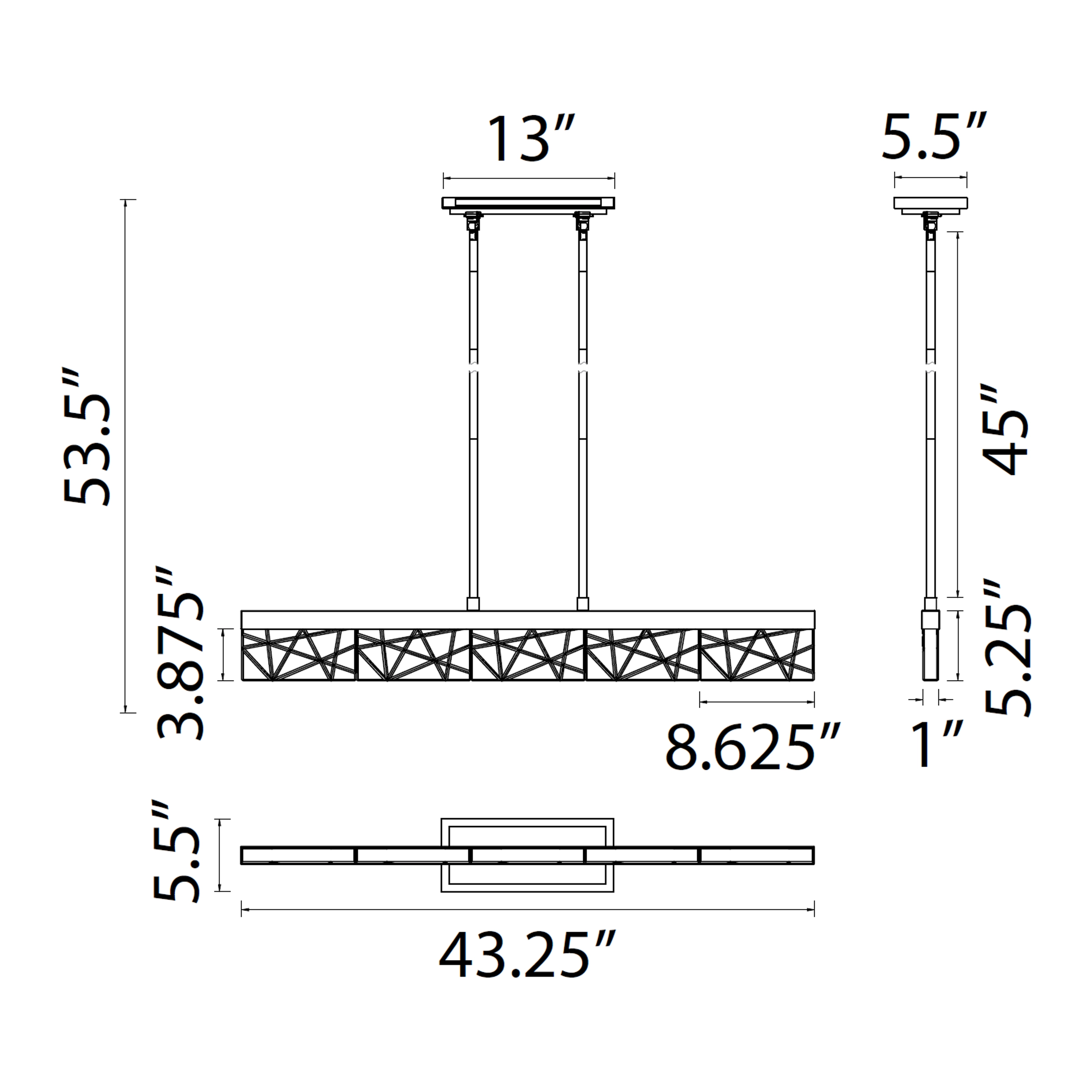 | Pendant Only | L-43.5" x W-1.375" x H-5.25" | Weight | 36 lbs |