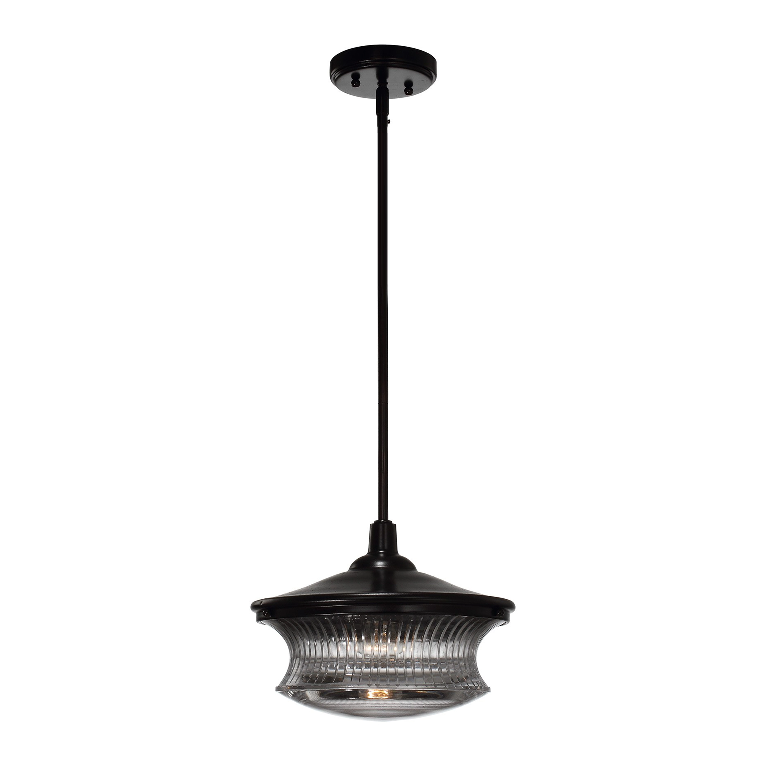 1-Light 12" Single Pendant with Concaved Clear Glass Fluted Shade and Dark Bronze Metal Finish.