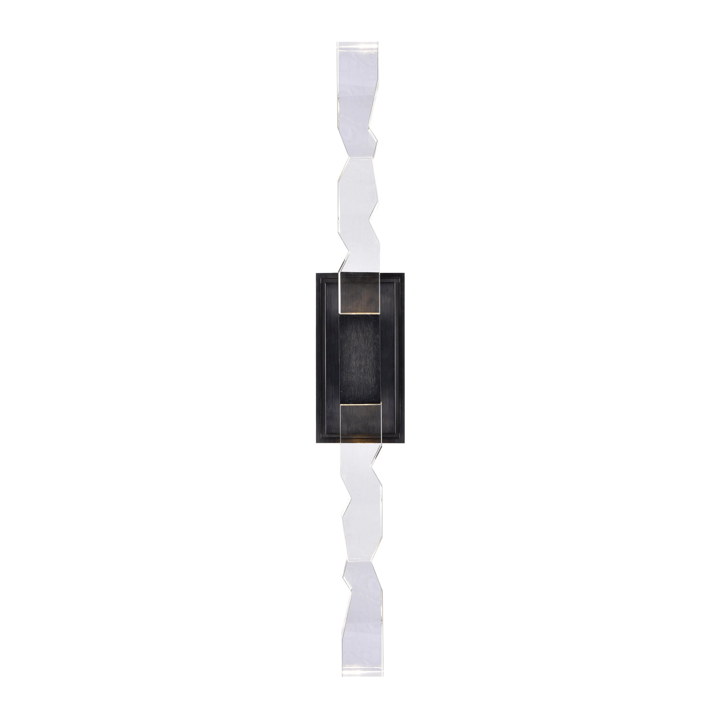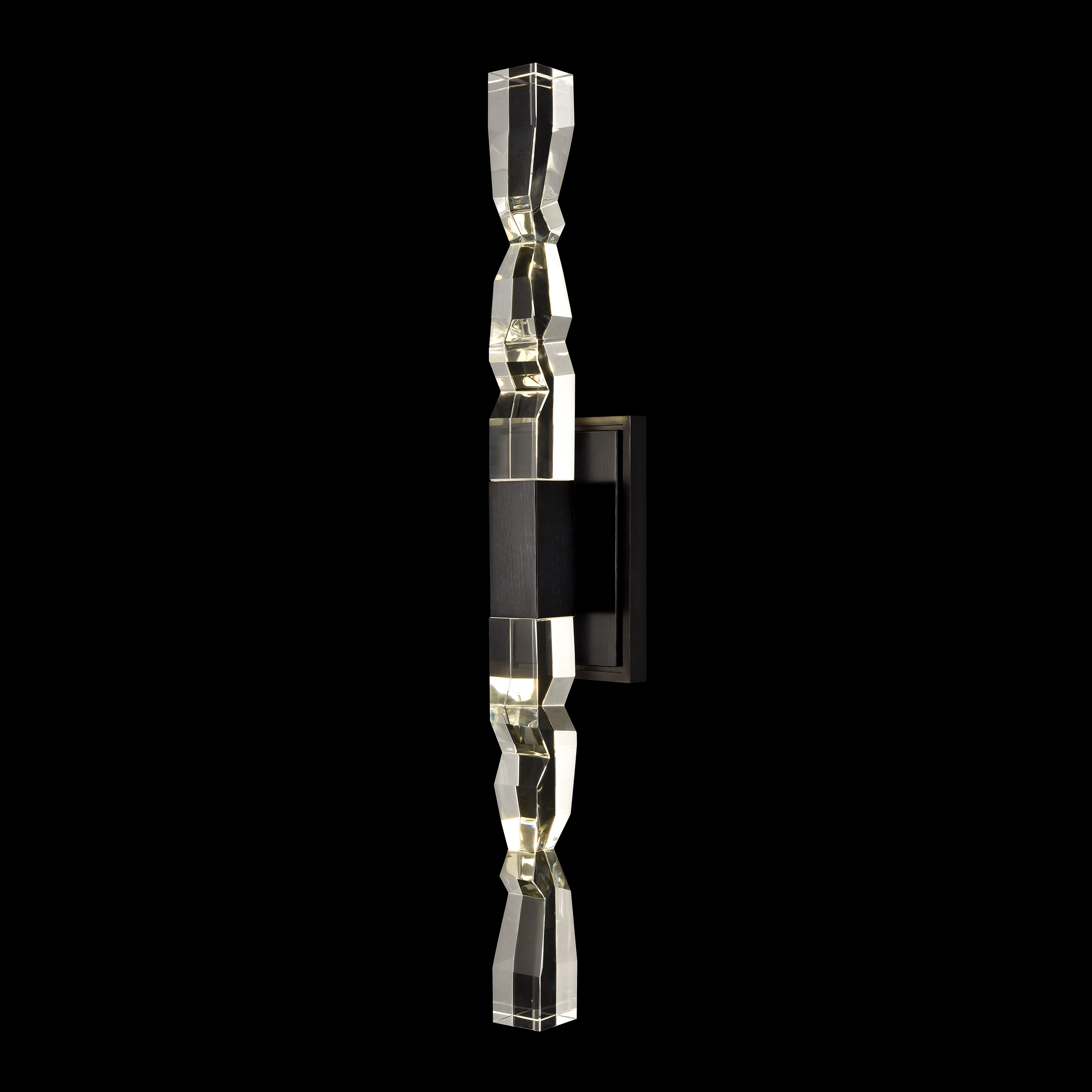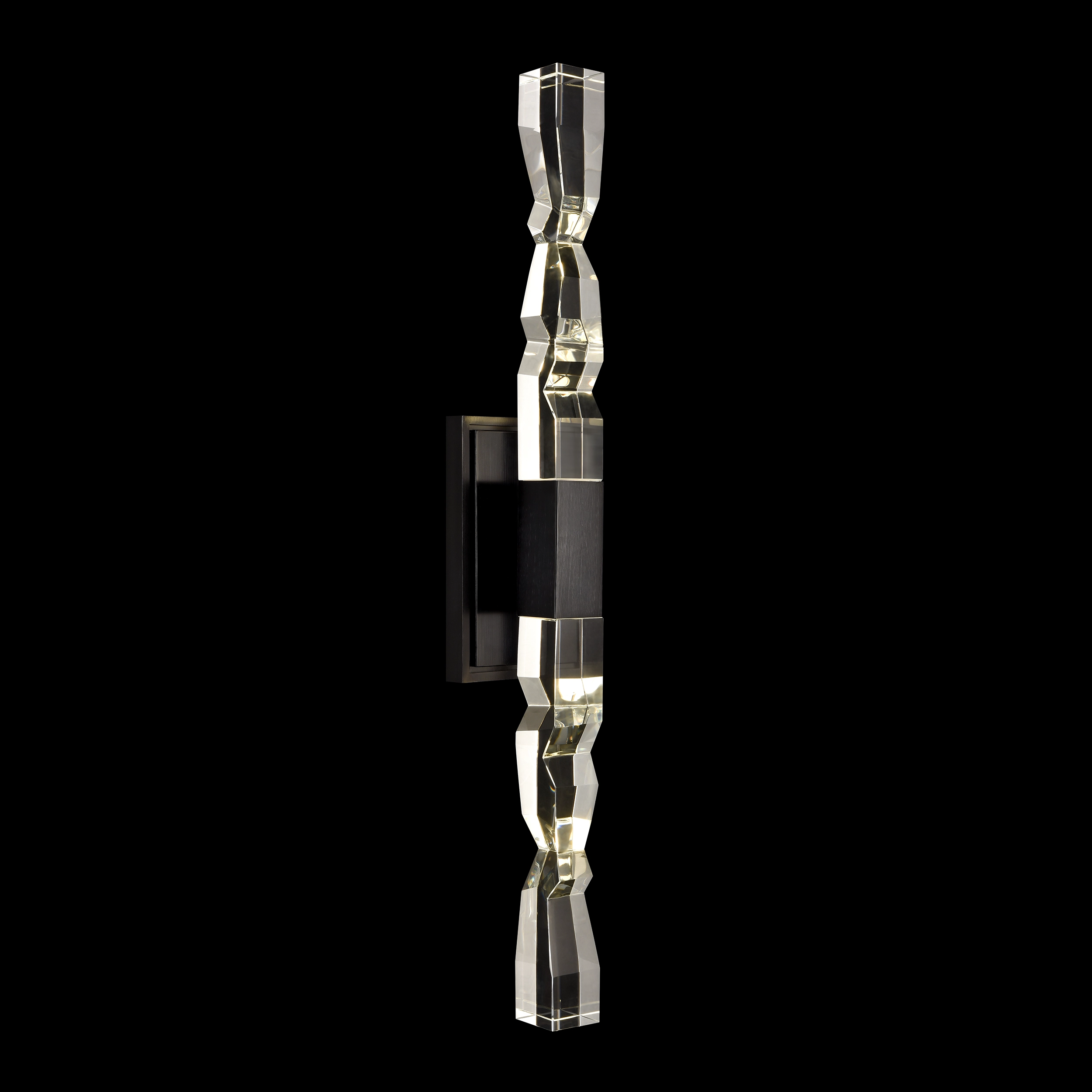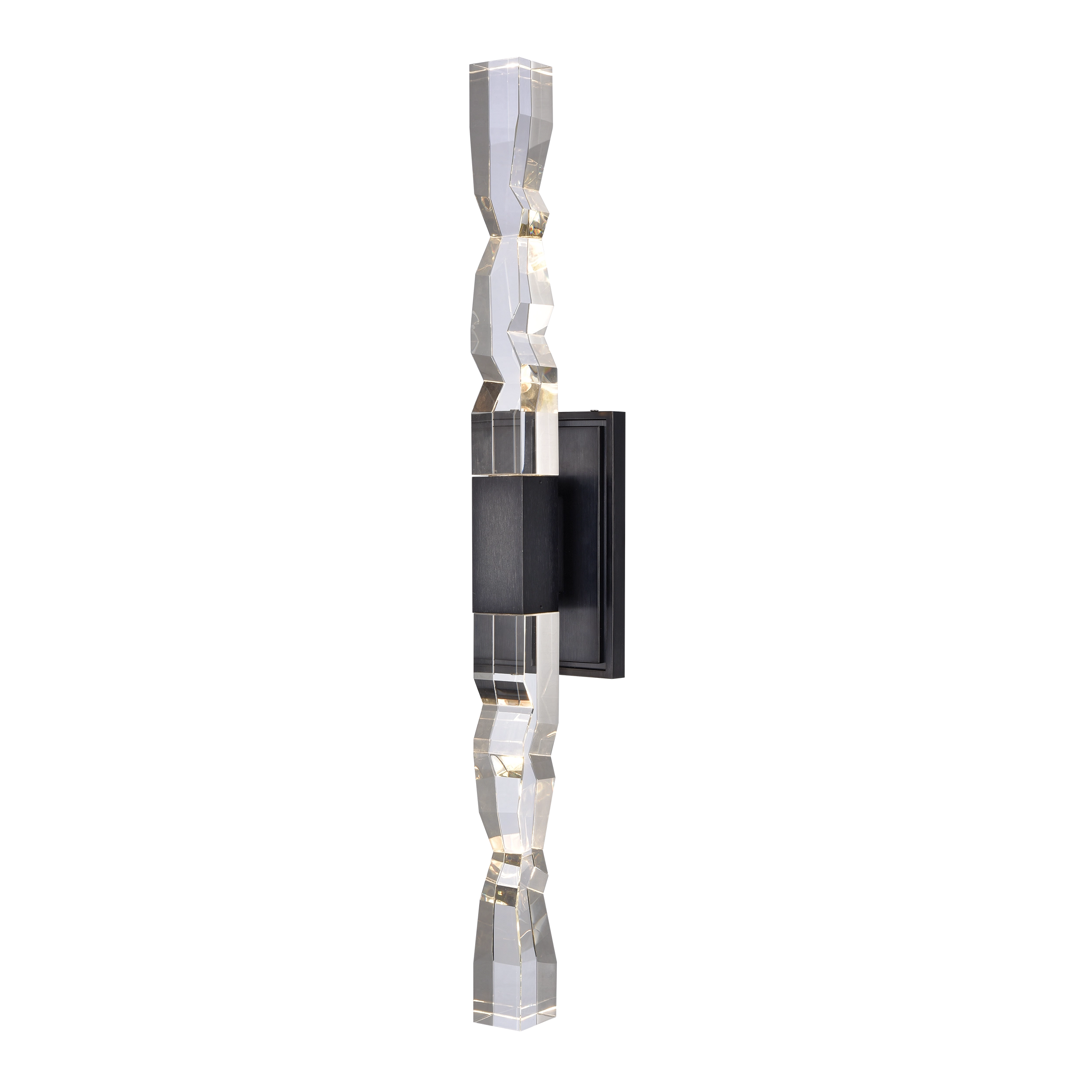 LED 2-Light hand formed and polished heavy gauge 2" x 2" crystal duo wall sconce, with deep edges and slants with each side unique. Refined iron metal details with our sleek satin brushed black finish. Integrated Replaceable LED with 3CCT 3000K, 3500K and 4000K.