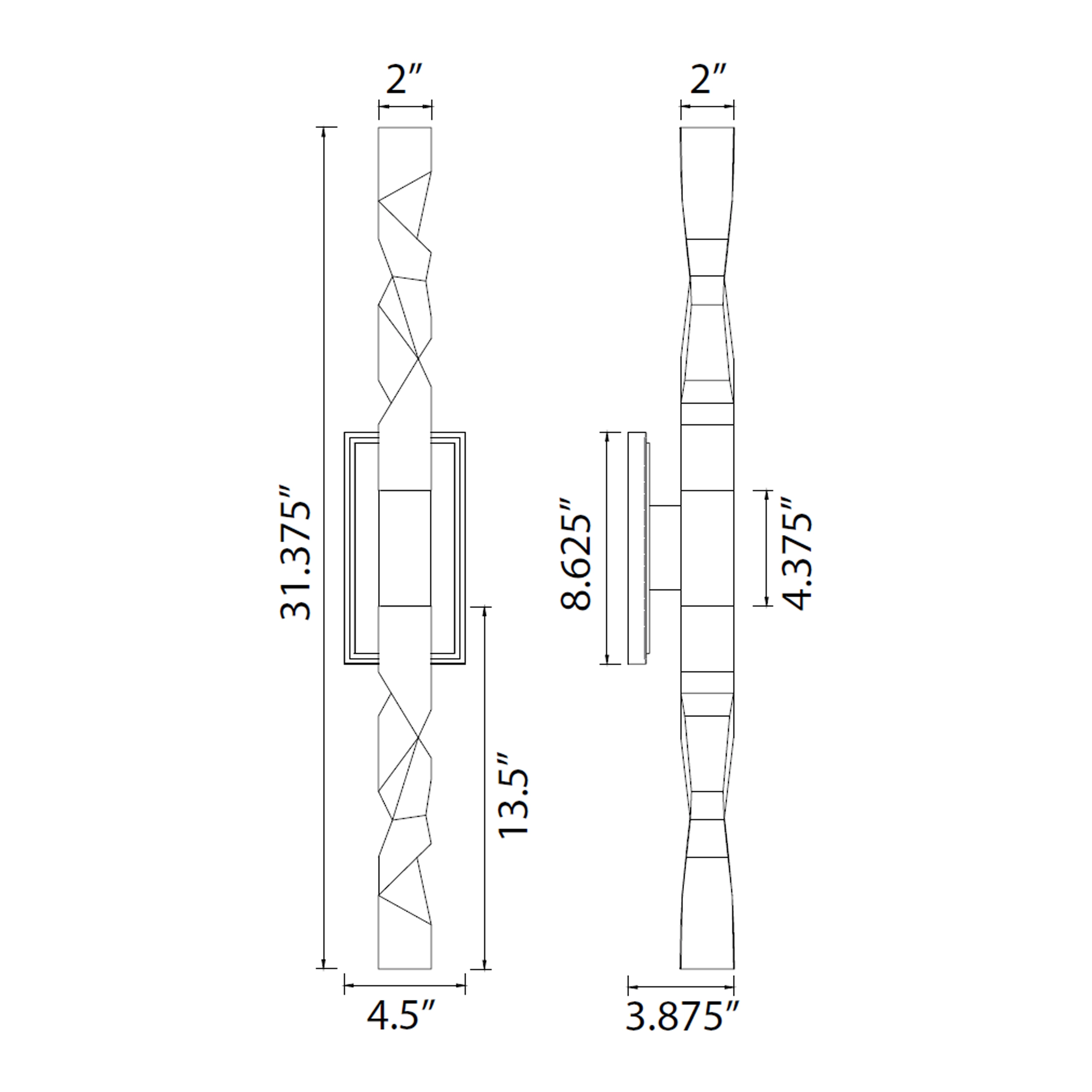 | Canopy | L-4.5" x H-8.625" x E-0.75" | Installed | W-4.5" x H-31.375" x E-3.875" |