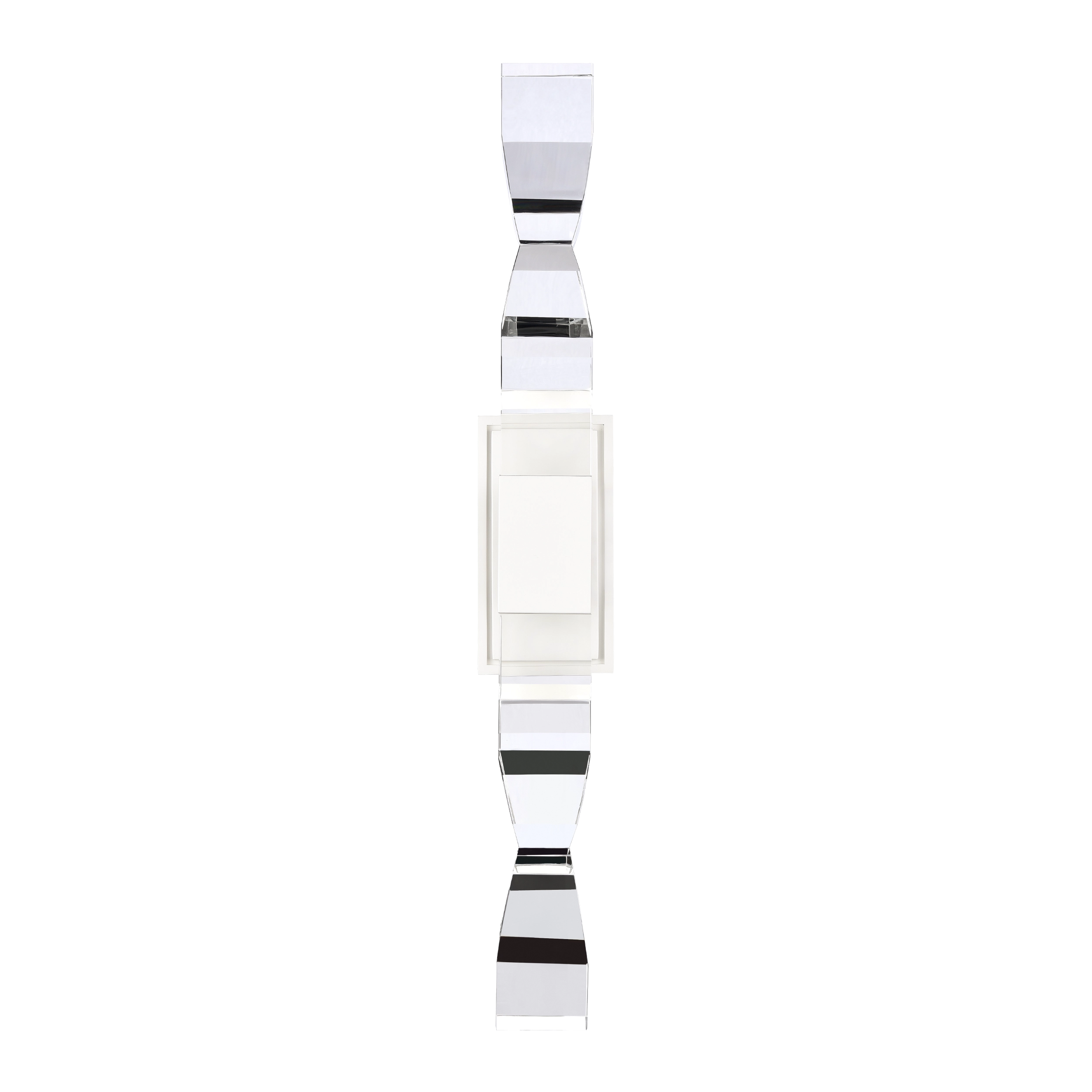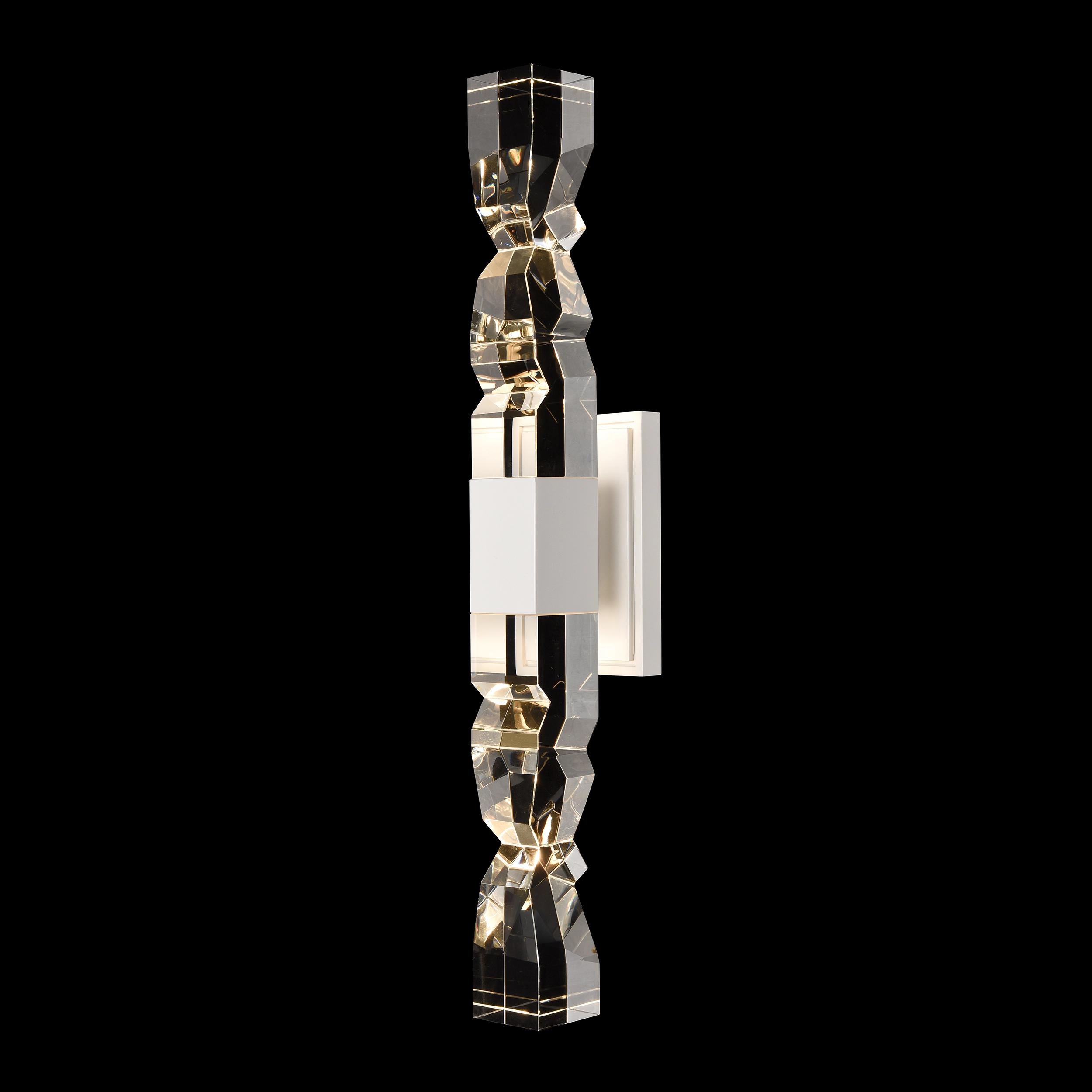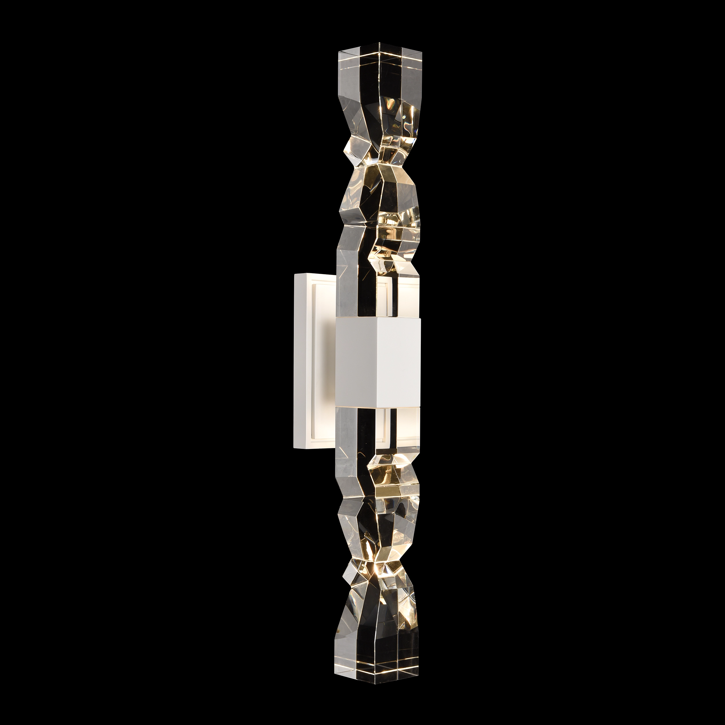 LED 2-Light hand formed and polished heavy gauge 3" x 3" crystal duo wall sconce, with deep edges and slants with each side unique. Refined iron metal details with our chic matte white finish. Integrated Replaceable LED with 3CCT 3000K, 3500K and 4000K.