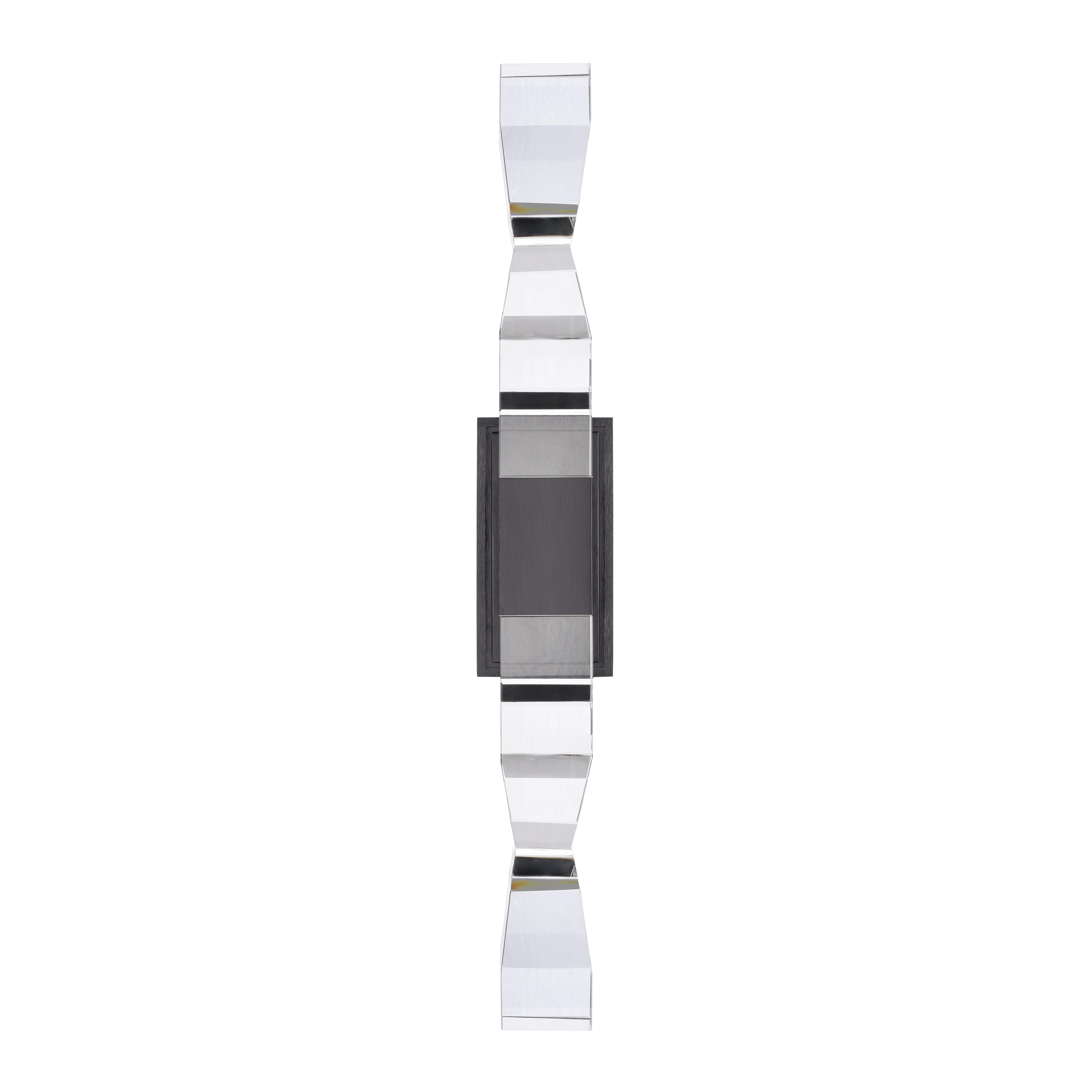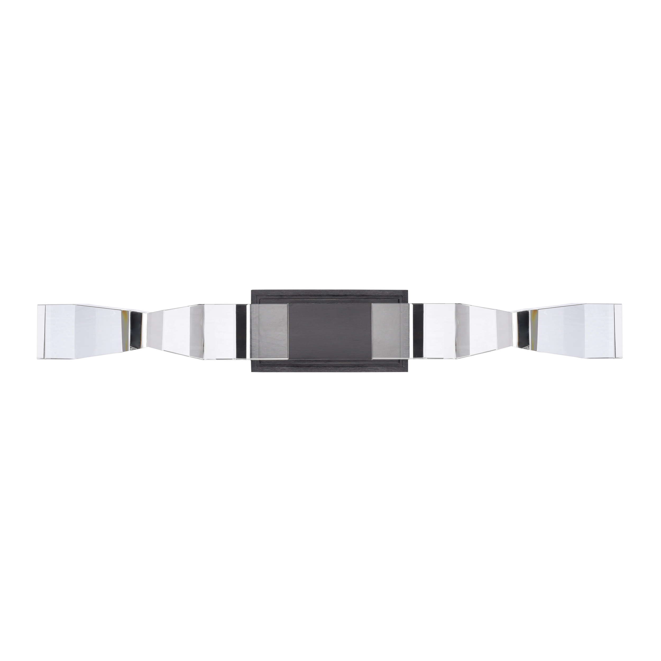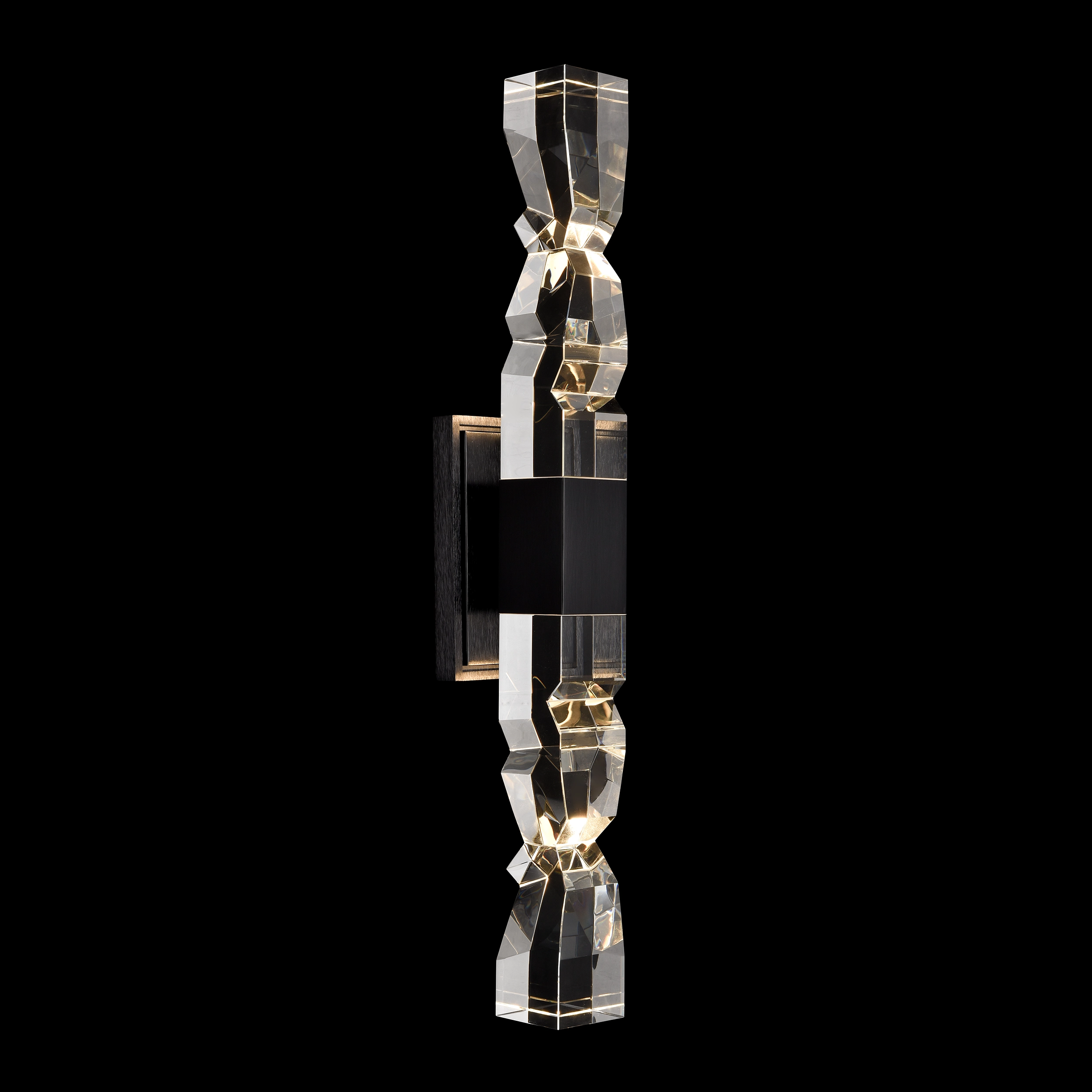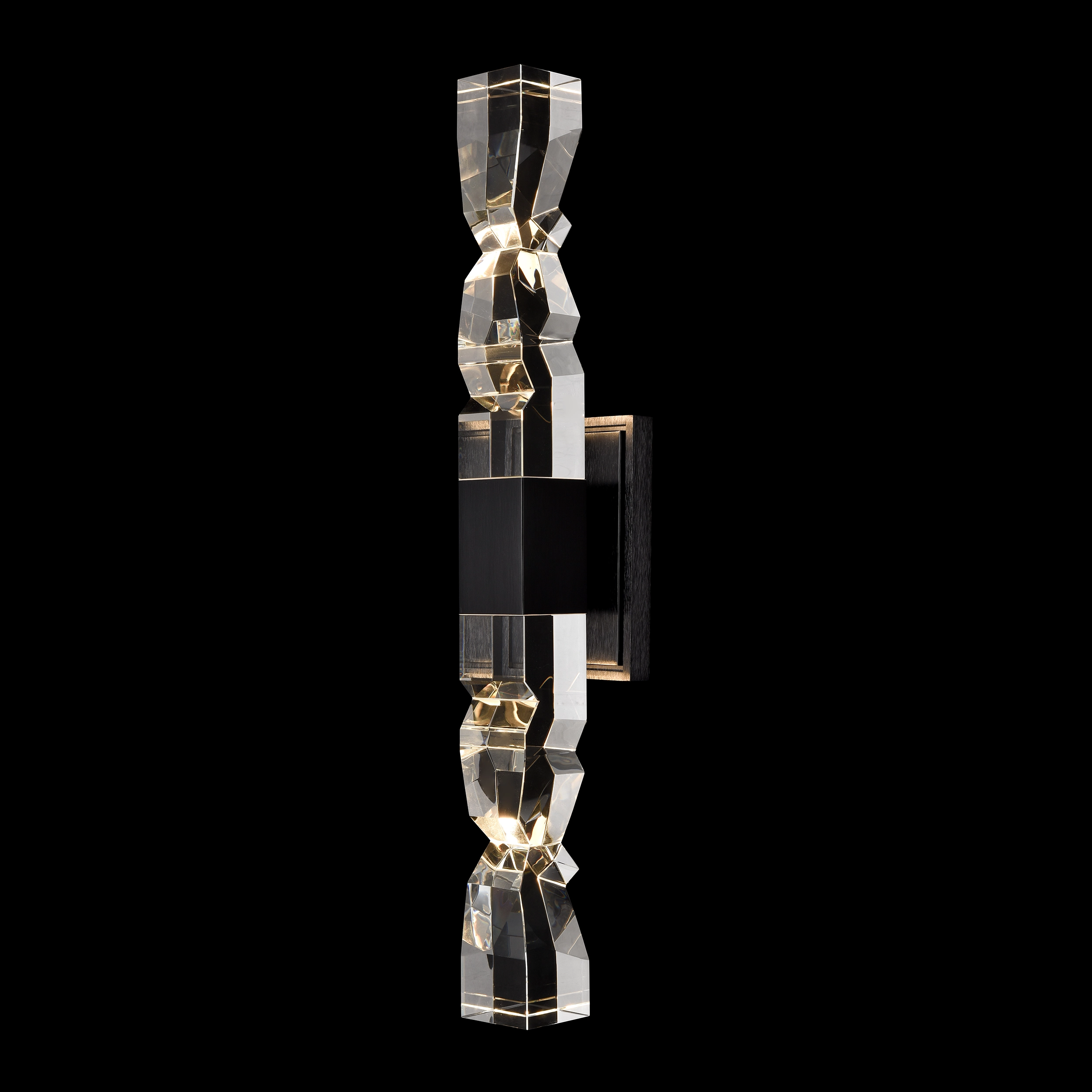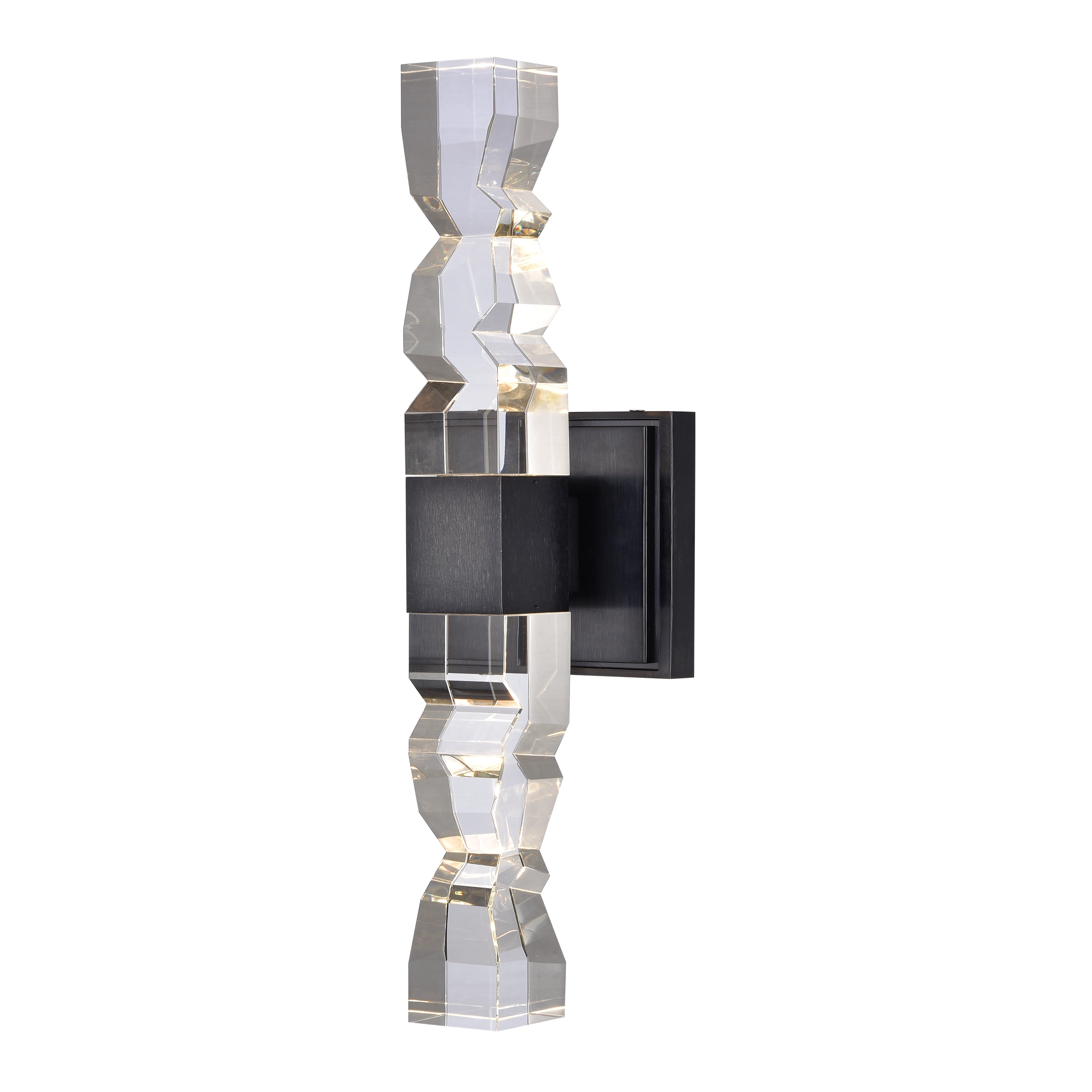LED 2-Light hand formed and polished heavy gauge 3" x 3" crystal duo wall sconce, with deep edges and slants with each side unique. Refined iron metal details with our sleek satin brushed black finish. Integrated Replaceable LED with 3CCT 3000K, 3500K and 4000K.