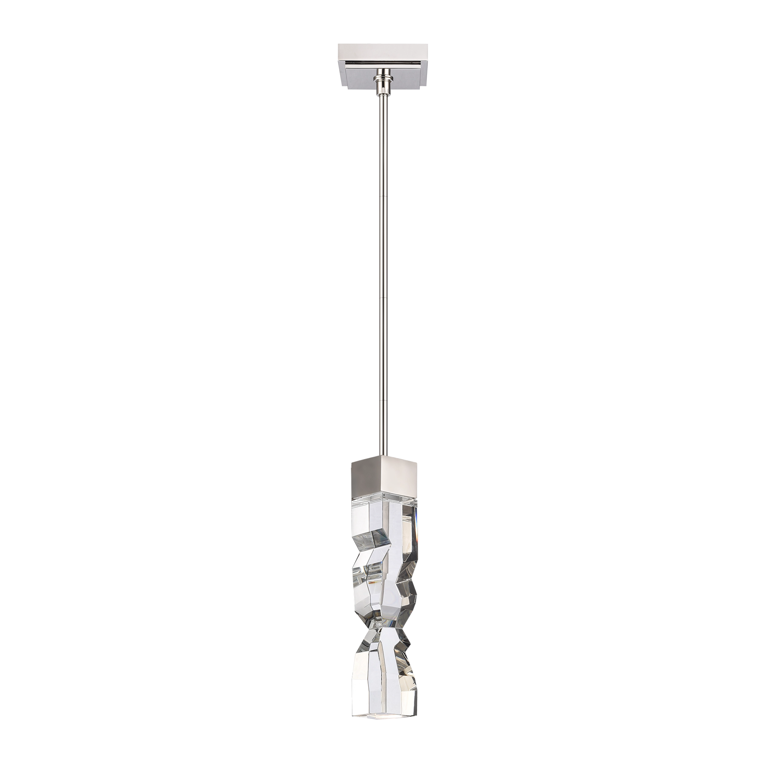 LED hand formed and polished heavy gauge 3" x 3" crystal Mini-Pendant, with deep edges and slants with each side unique. Refined iron metal details with our luxurious polished nickel finish. Integrated Replaceable LED with 3CCT 3000K, 3500K and 4000K.