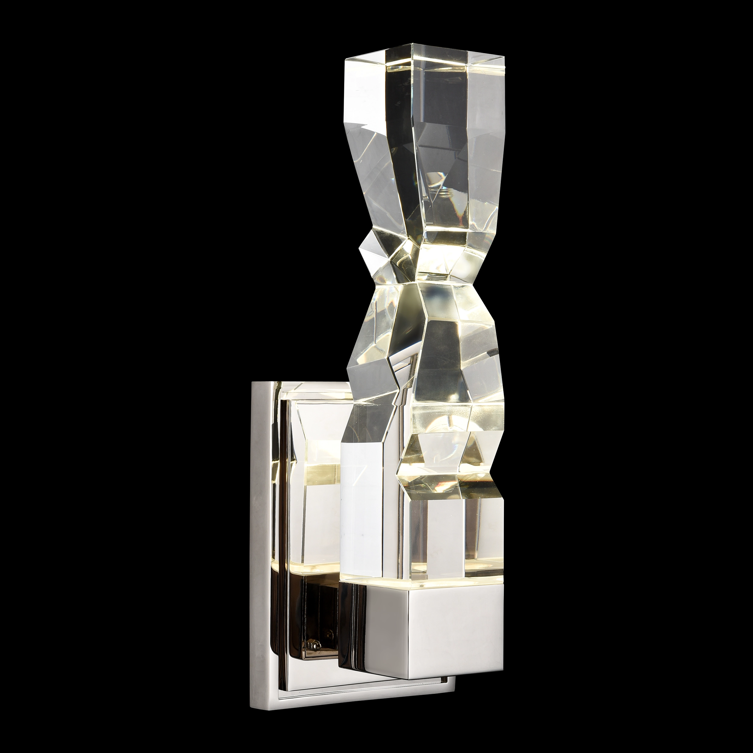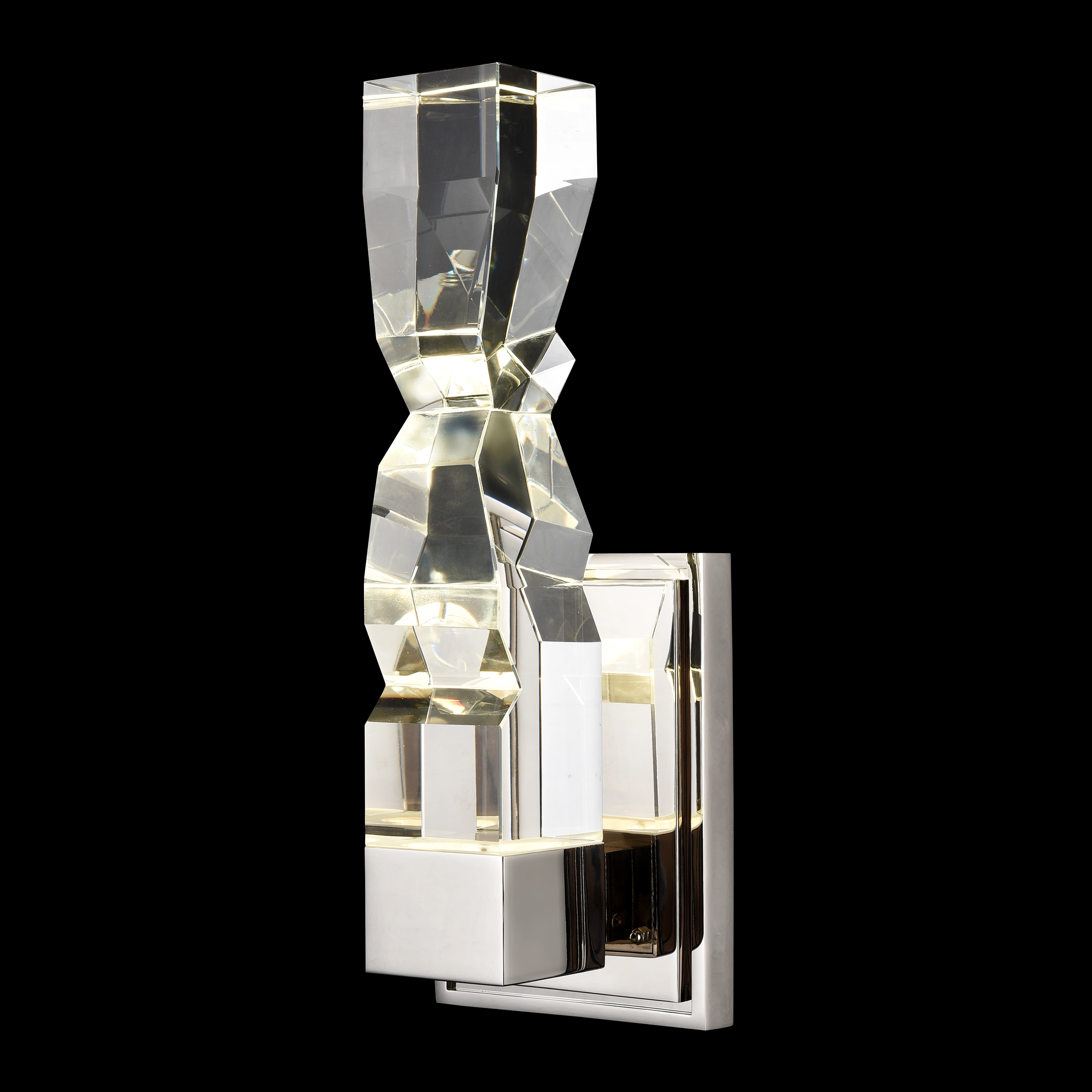 LED hand formed and polished heavy gauge 3" x 3" crystal vertical wall sconce, with deep edges and slants with each side unique. Refined iron metal details with our sleek satin brushed black finish. Integrated Replaceable LED with 3CCT 3000K, 3500K and 4000K.