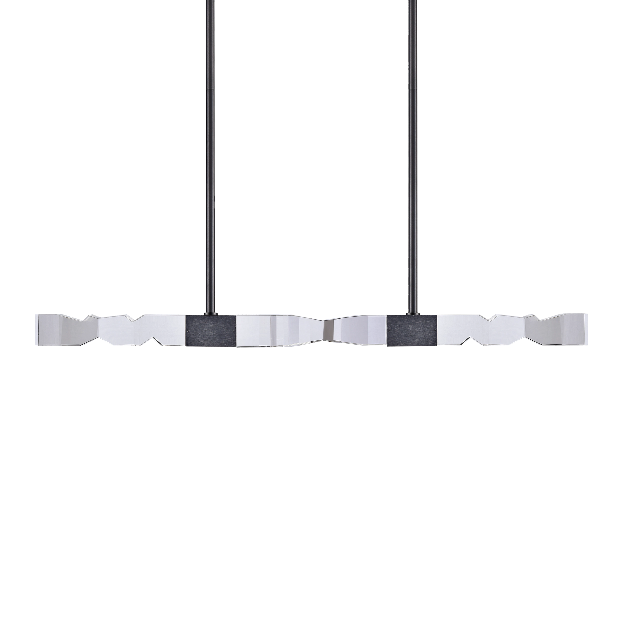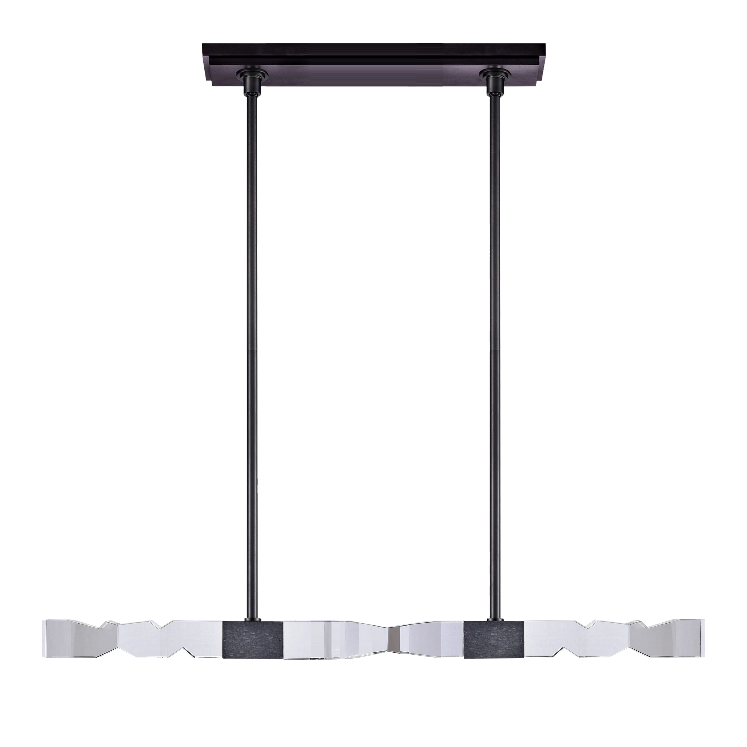 LED 49" 4-light hand formed and polished heavy gauge 2" x 2" linear crystal pendant, with deep edges and slants with each side unique. Refined iron metal details with our sleek satin brushed black finish. Integrated Replaceable LED with 3CCT 3000K, 3500K and 4000K.