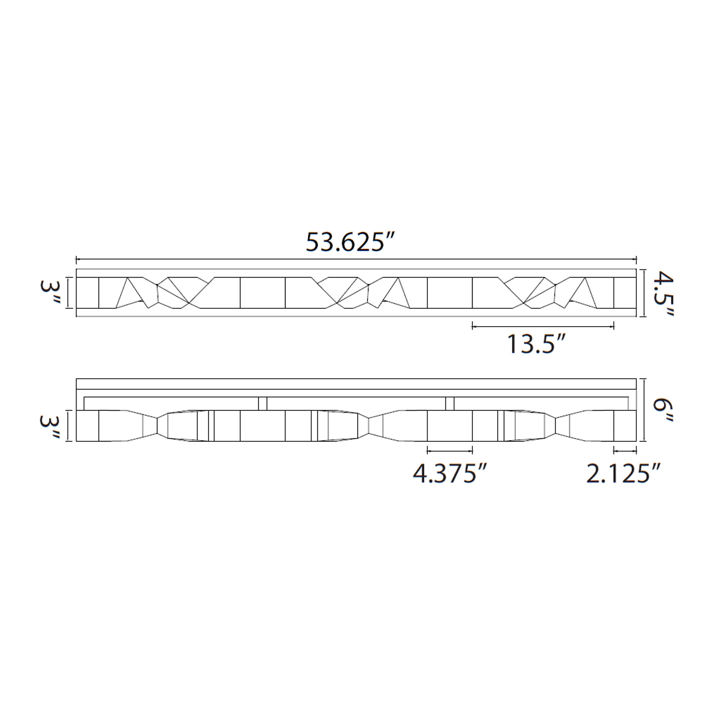 | Canopy | L-53.625" x H-4.5" x E-1" | Installed | L-53.625" x H-4.5" x E-6" |