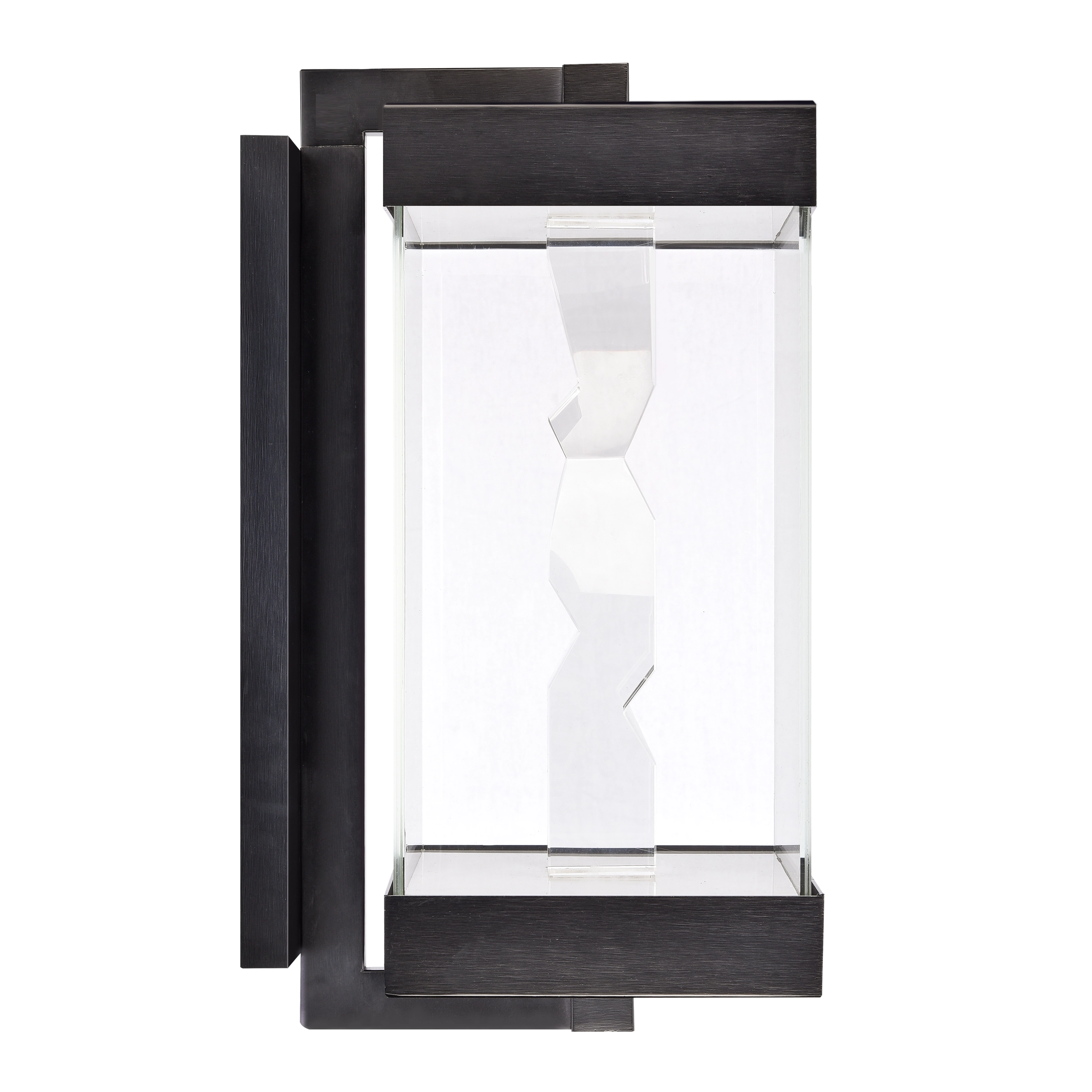 Modern 18" 4-Light Exterior Glass Incased Crystal Wall Sconce. Hand formed and polished heavy gauge 2" x 2" crystal with deep edges and slants with each side unique. Refined metal details with our marine grade sleek satin brushed black finish. Equipped with a 3 way switch to showcase the crystal or glass on only or both together, with our powerful LED technology which is easily replaceable and 5CCT 2700K, 3000K, 3500K, 4000K, 5000K.