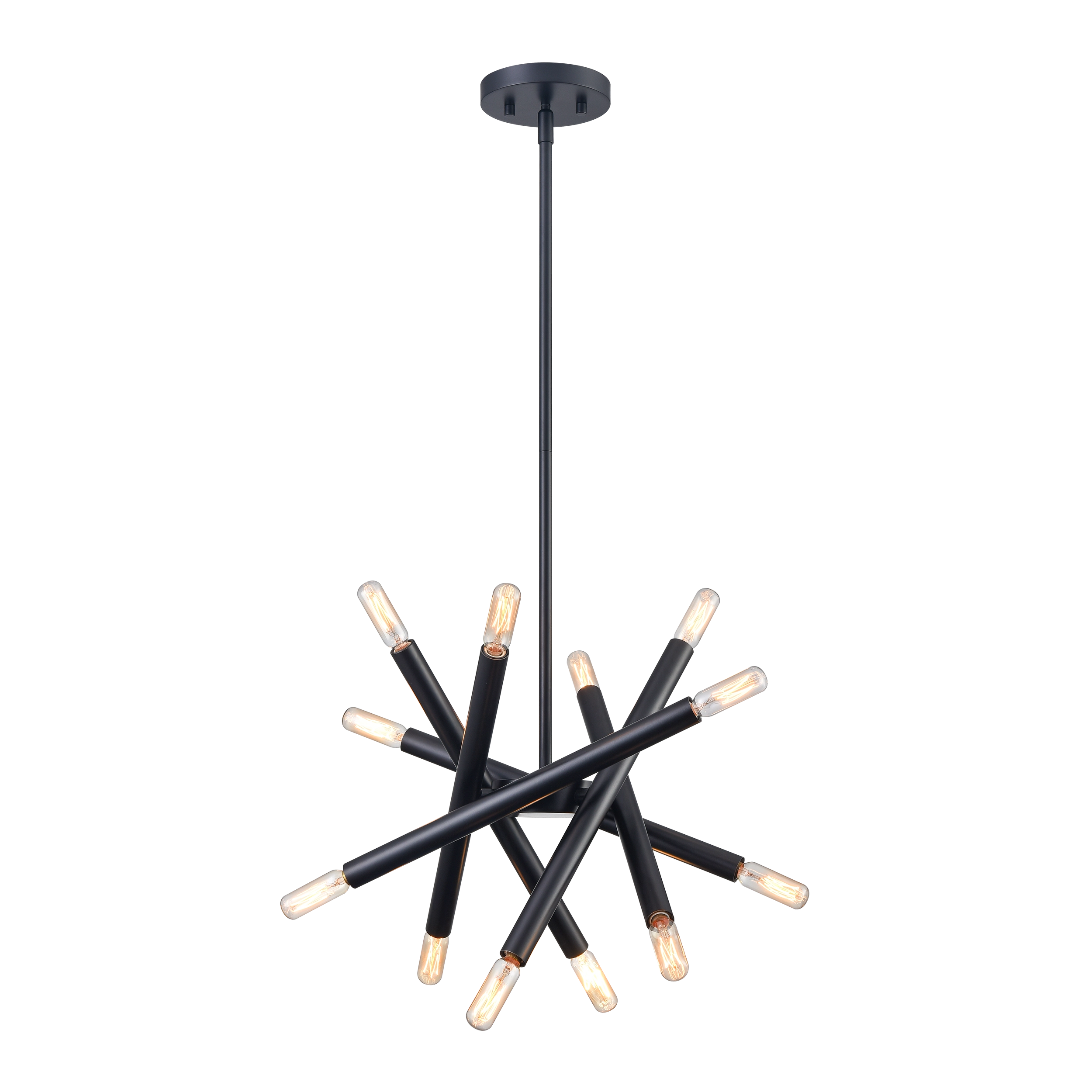 12-Light 14" Modern Sputnik Chandelier with Satin Brushed Black Adjustable Cylinders and Metal Finish.