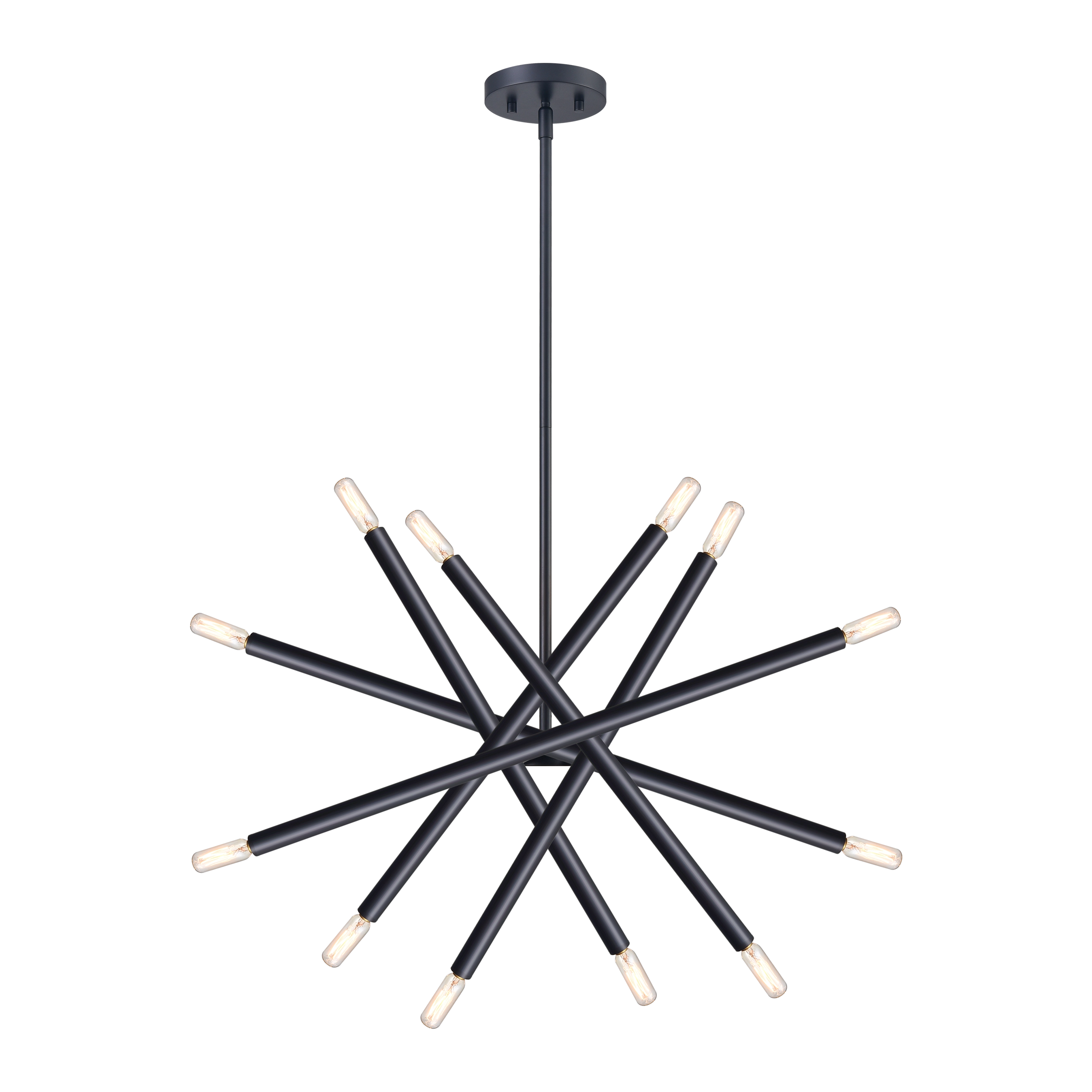 12-Light 32" Modern Sputnik Chandelier with Satin Brushed Black Adjustable Cylinders and Metal Finish.