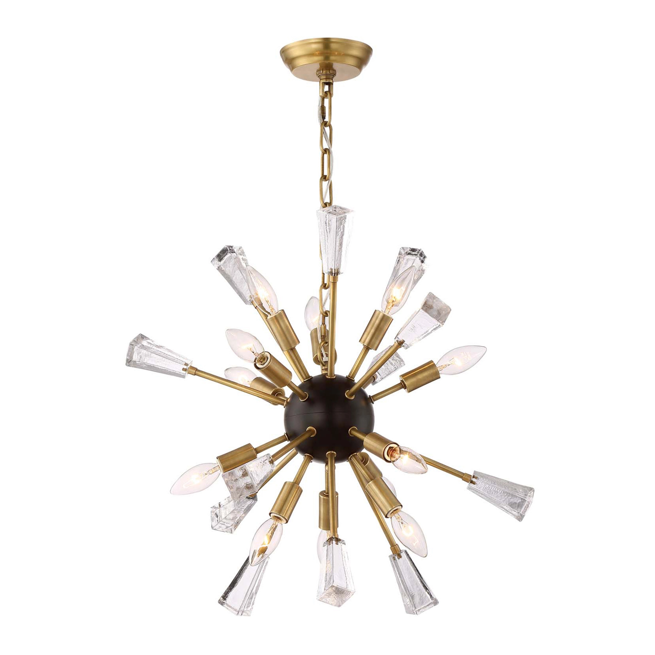 12-Light 24" Crystal Sputnik Chandelier with Clear Tapered Ice Styled Crystals. Aged Brass with Matte Black Metal Finish.