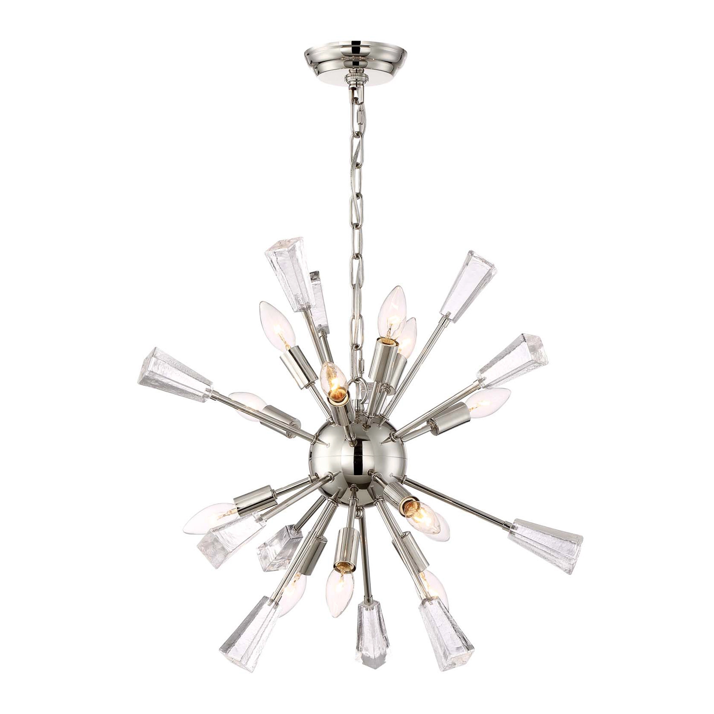 12-Light 24" Crystal Sputnik Chandelier with Clear Tapered Ice Styled Crystals and Polished Nickel Metal Finish.