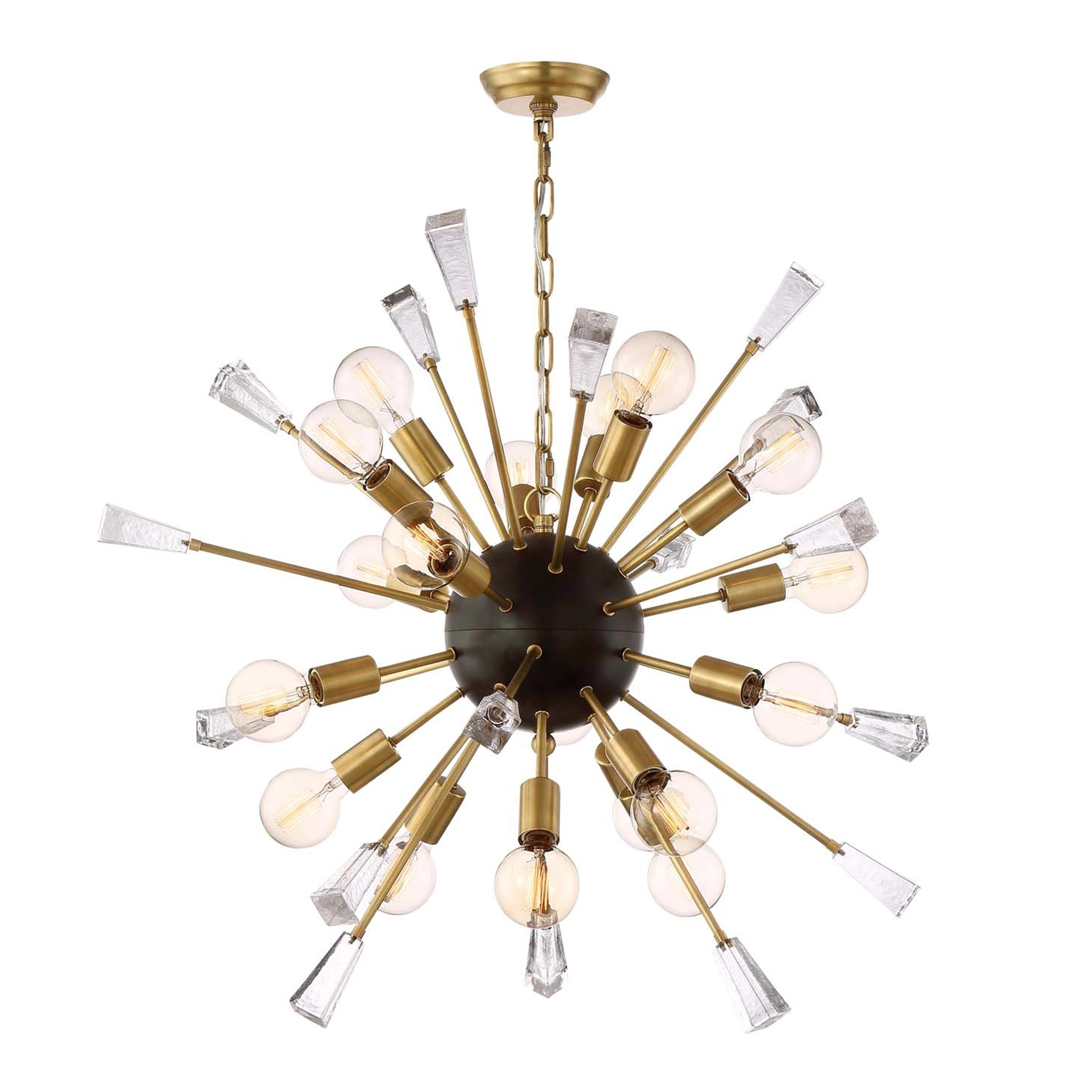 Muse 36″ 18-Light, Rock Crystal Sputnik in Aged Brass & Black