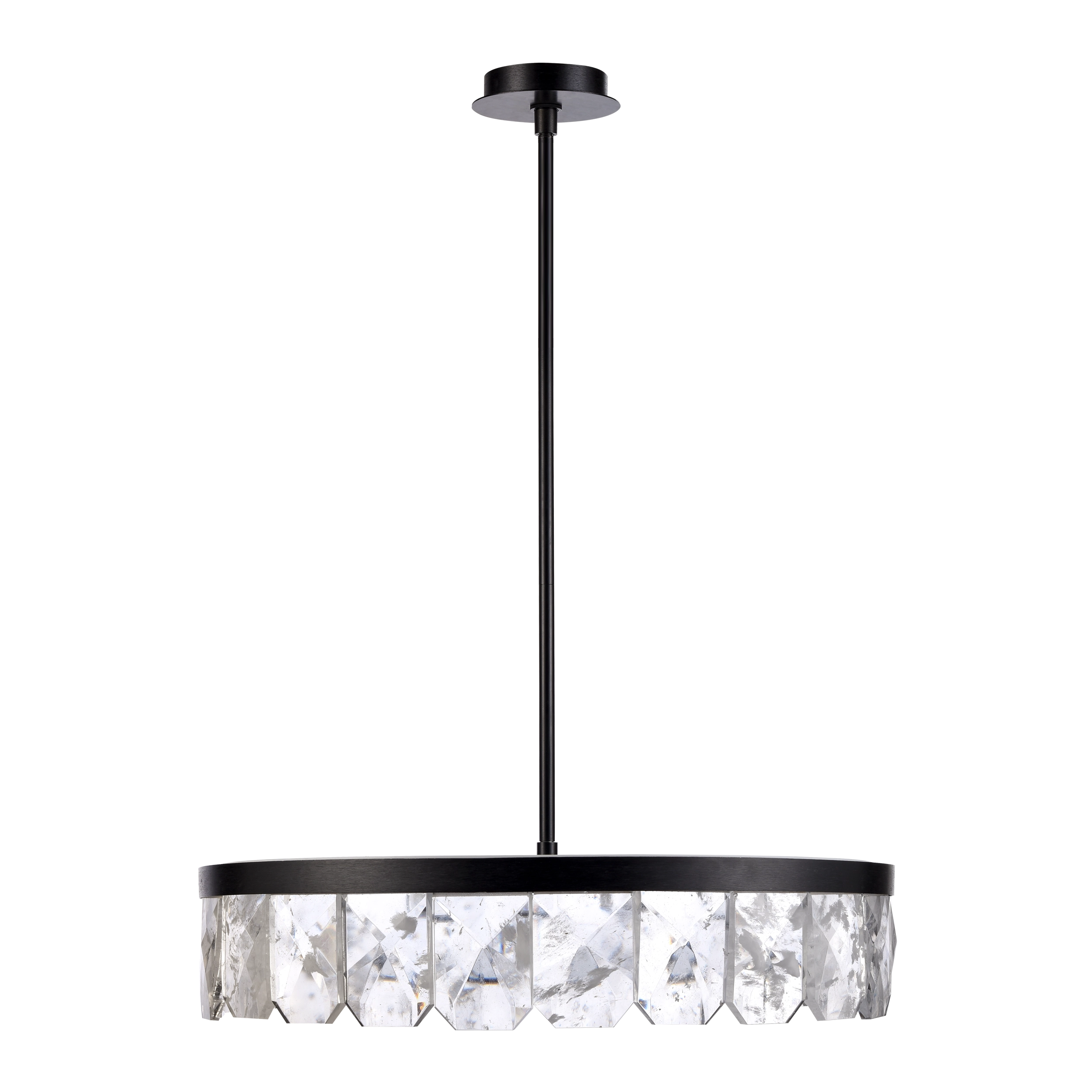Stunning 32" LED chandelier with pearly infused white nebulas within each crafted crystal which echo inside the pendant with dramatic sequel from inner mirror and finished with our sleek satin brushed black. Easily flush mountable and equipped with integrated replaceable LED, dimmable 3CCT 3000K, 3500K, 4000K modules.