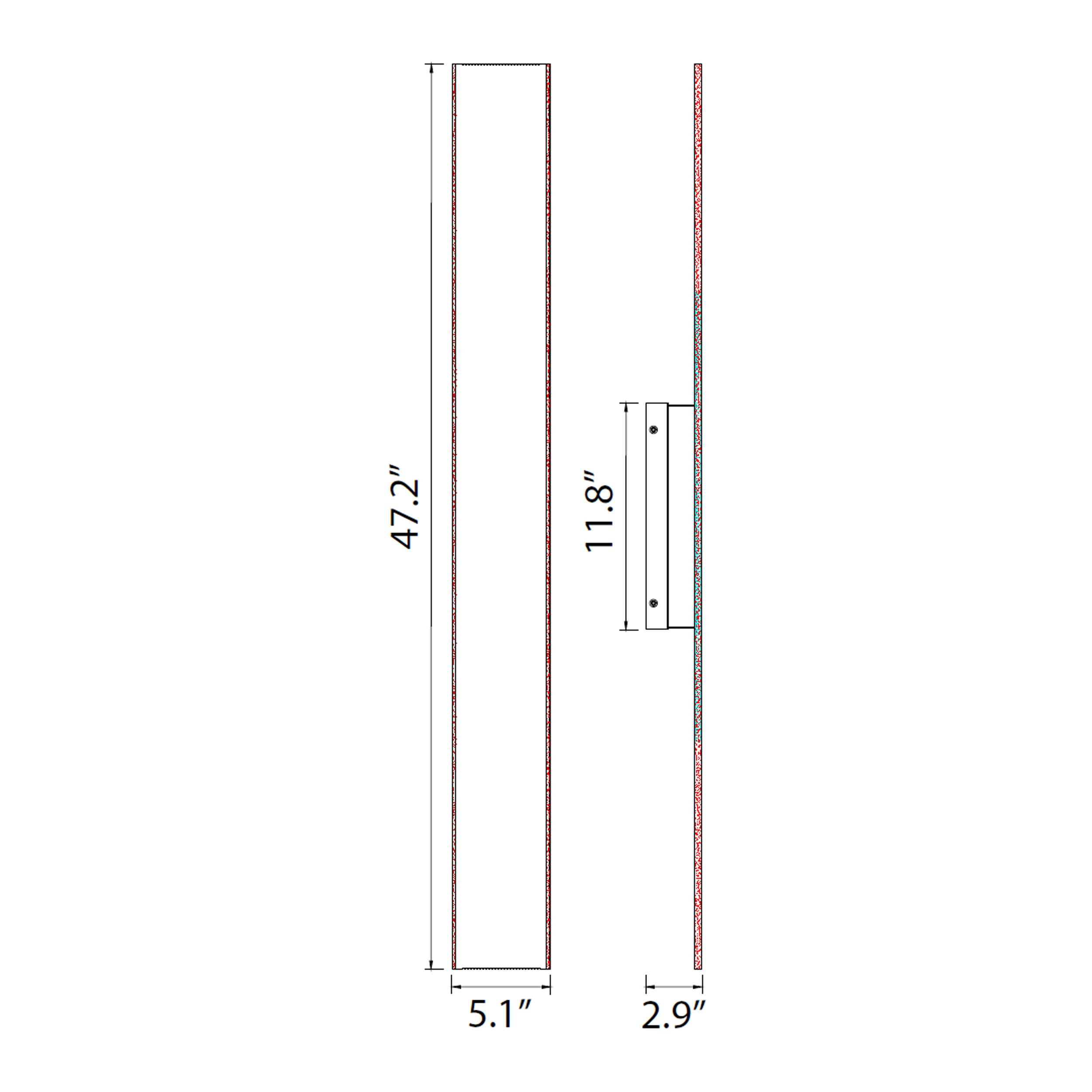 CanopyL-4.75" x H-11.875" x E-1"InstalledW-5.125" x H-47.25" x E-2.875"