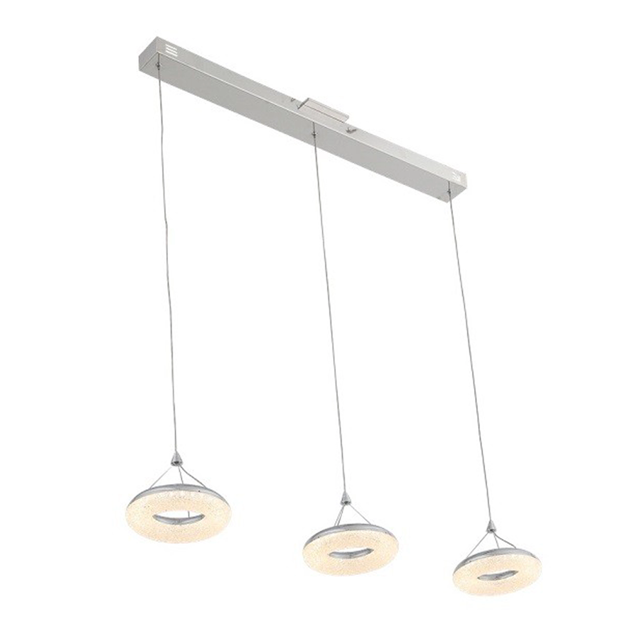 LED 36" Linear Ring Multi-Pendant with Crushed Crystal Diffusers and Polished Chrome Finish.