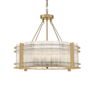Regis 40″ 8-Light, Linear Fluted Glass Chandelier in Polished Nickel