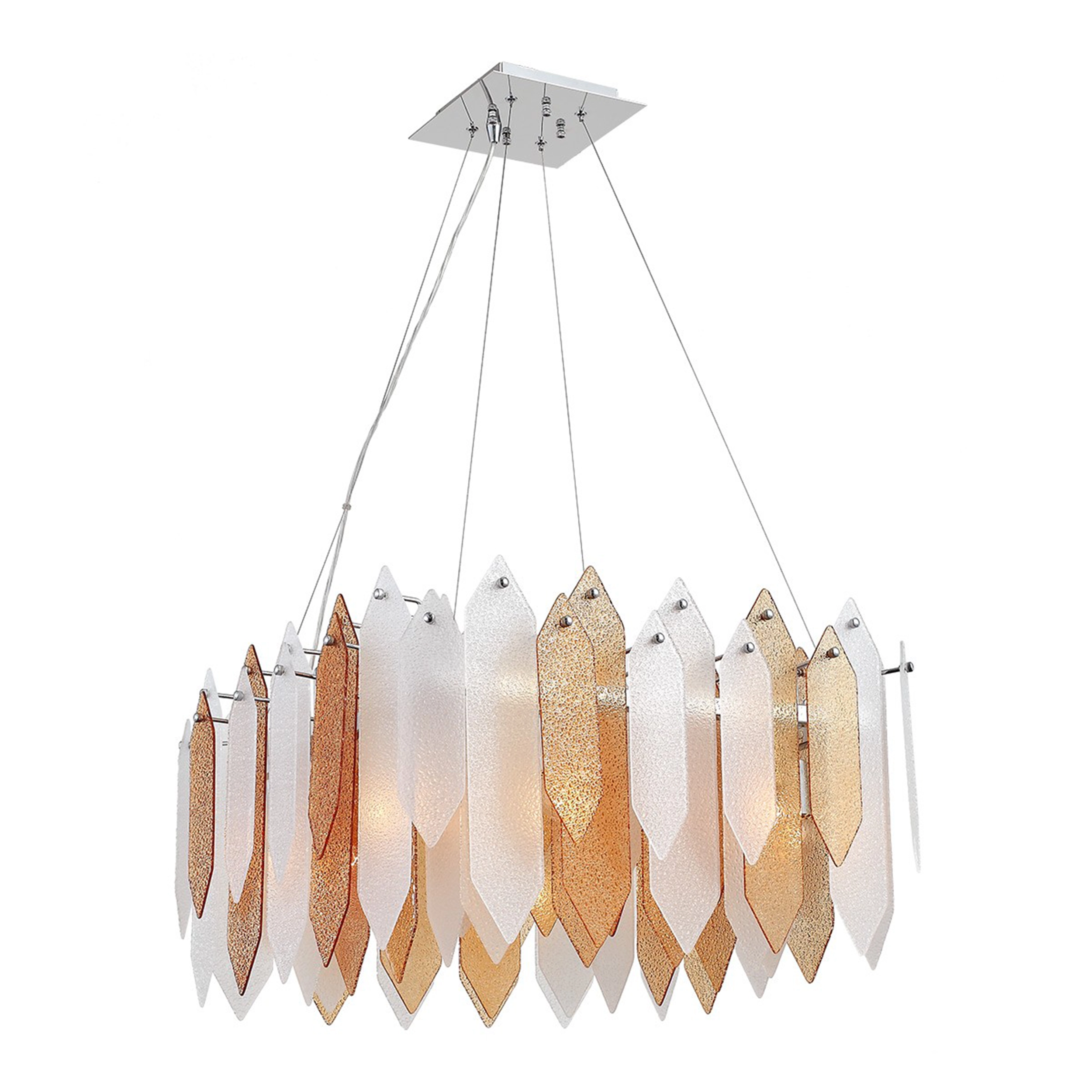 Stratus 40″ 8-Light, Square Amber Glass Chandelier in Chrome