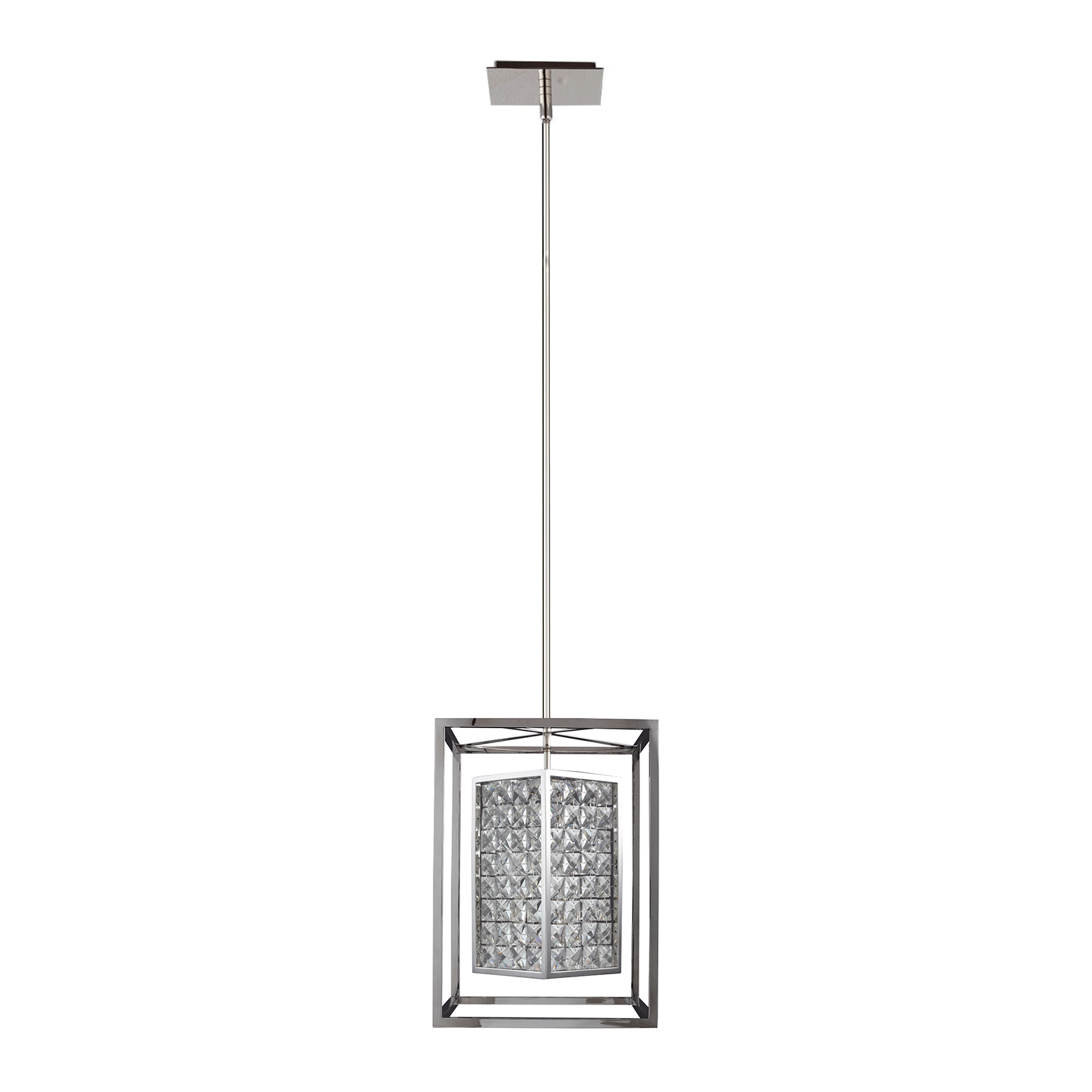 Single Light Geometric Crystal Mini Pendant with Rectangular Combined Clear Faceted Square Crystal Inner Shade and Stainless Steel Finished Frame.