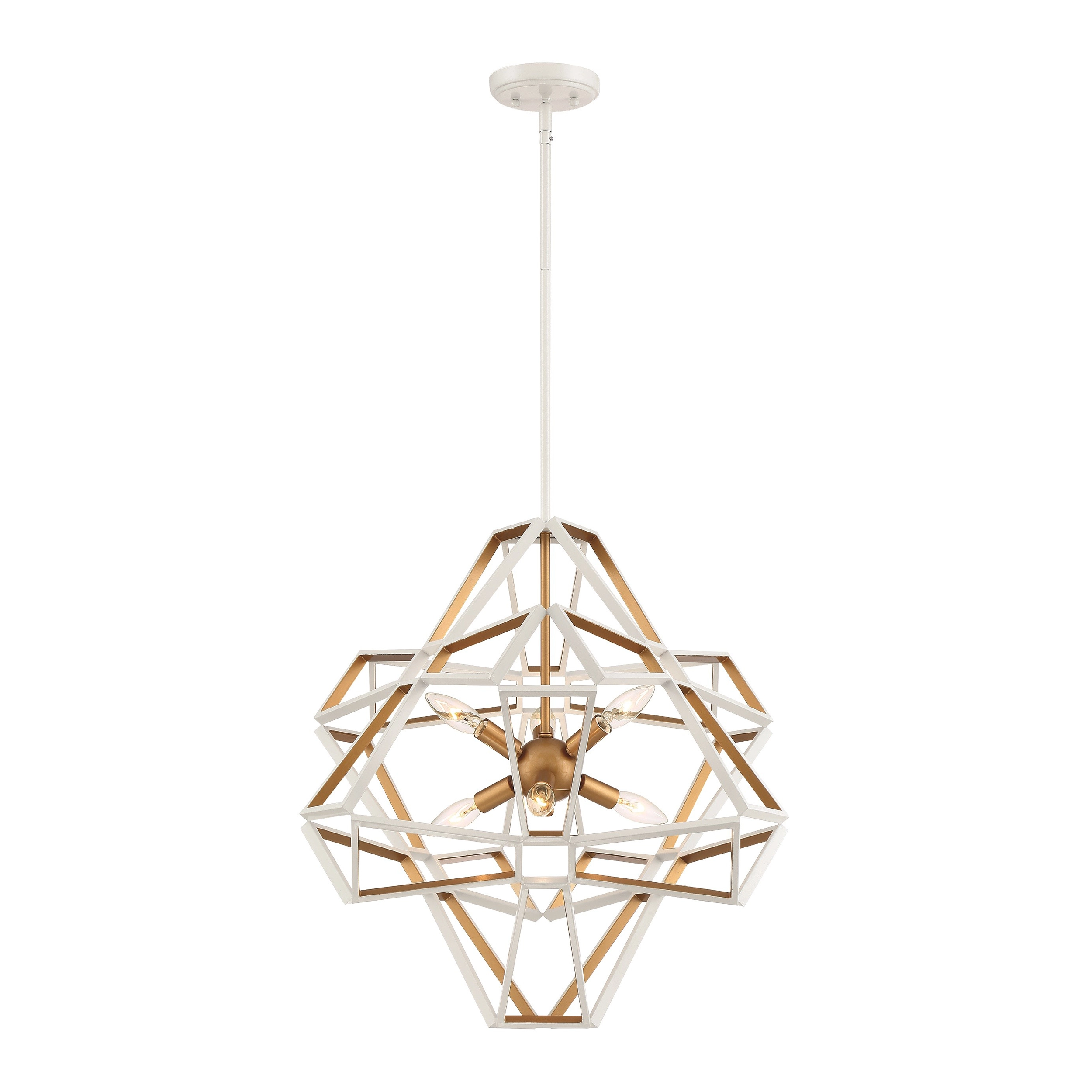Unity 6-Light, Geometric Chandelier in Satin White & Gold