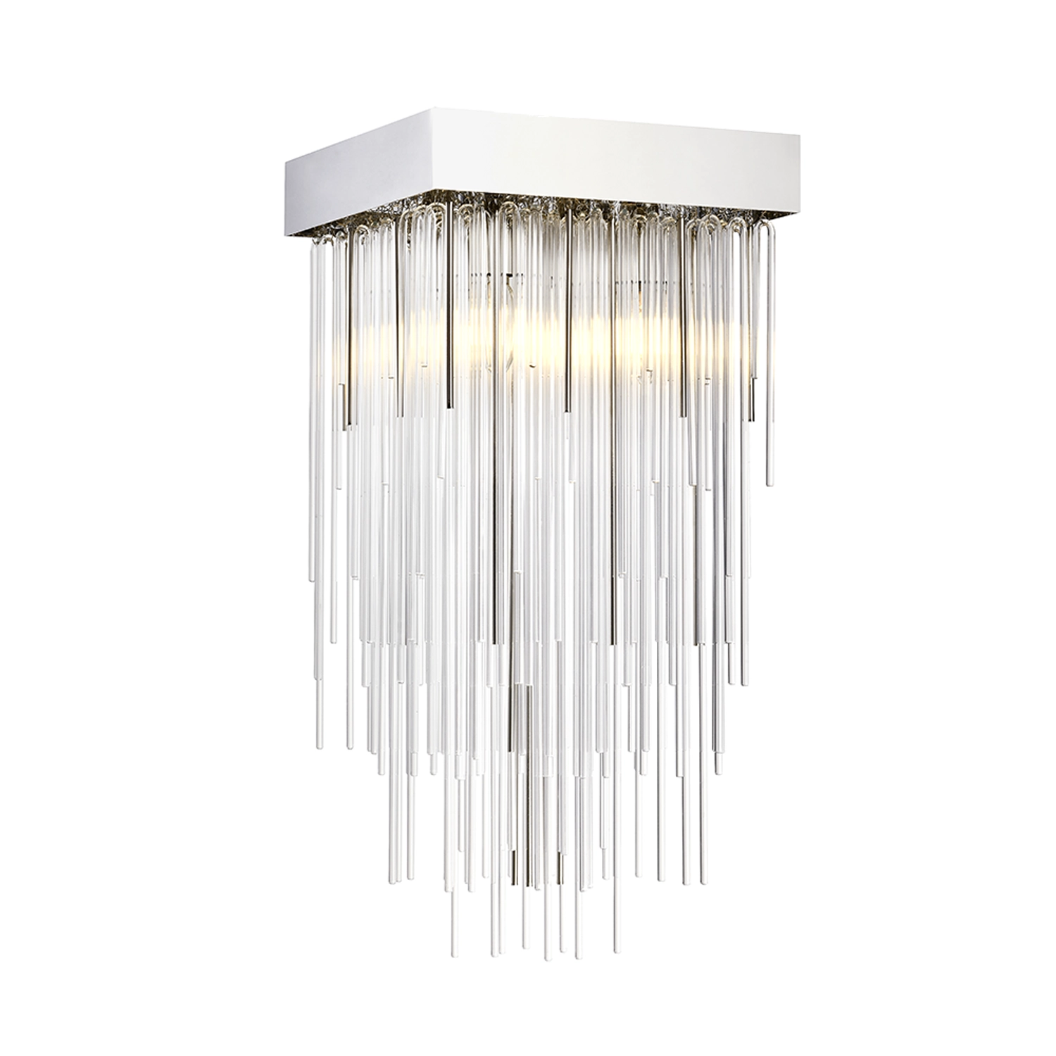 Waterfall 12″ 4-Light, Square Glass Pendant in Polished Nickel