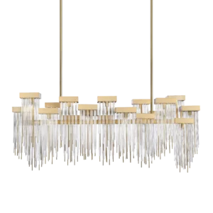 4-Light 18" Designer Cityscape Semi-Flush Mount with Multi-Sized Clear Curved Crystal Stems combined with Solid Metal Stems. Refined Metal Details with our Premium Aged Brass Finish.