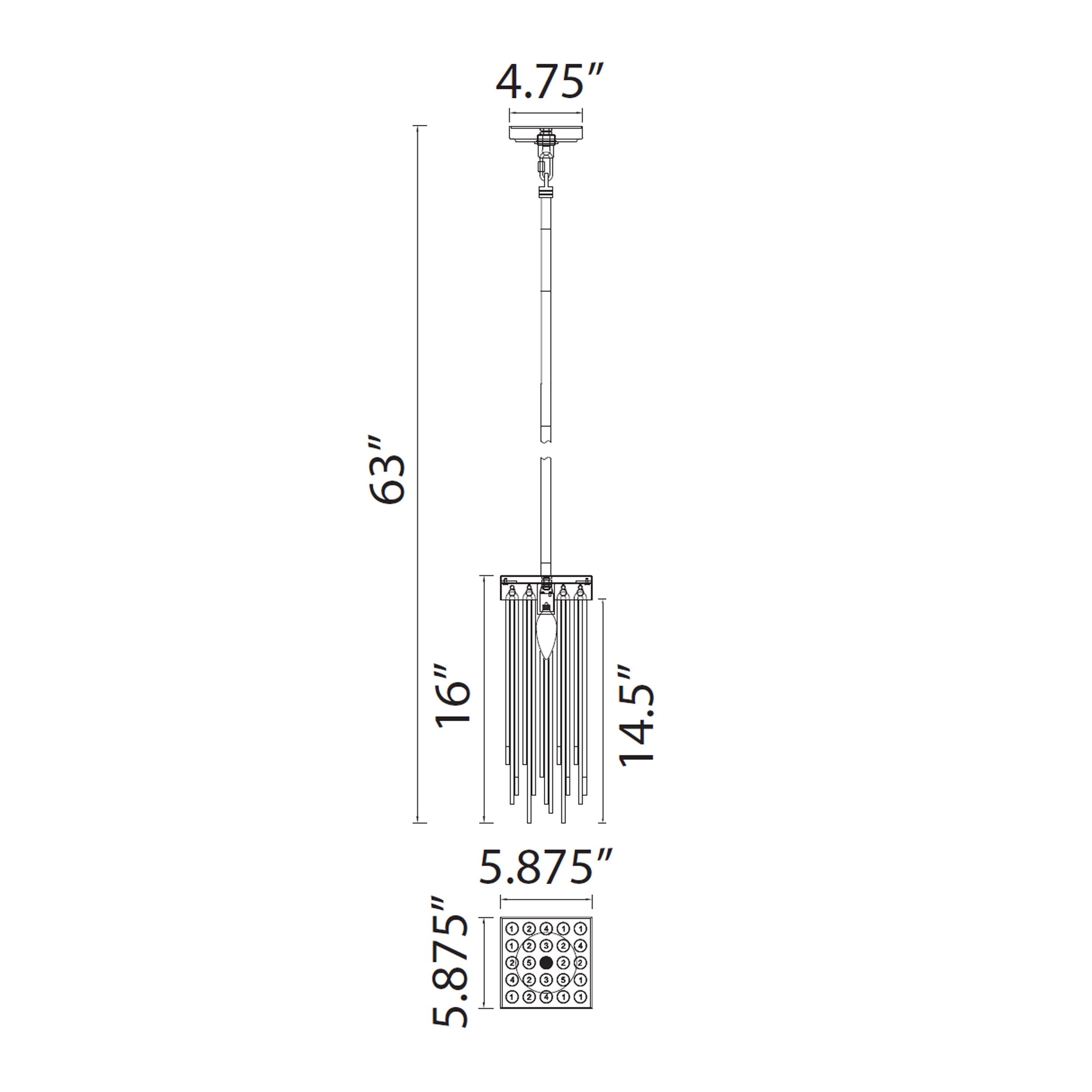 | Pendant Only | L-5.875" x W-5.875" x H-16" | Weight | 5 lbs |