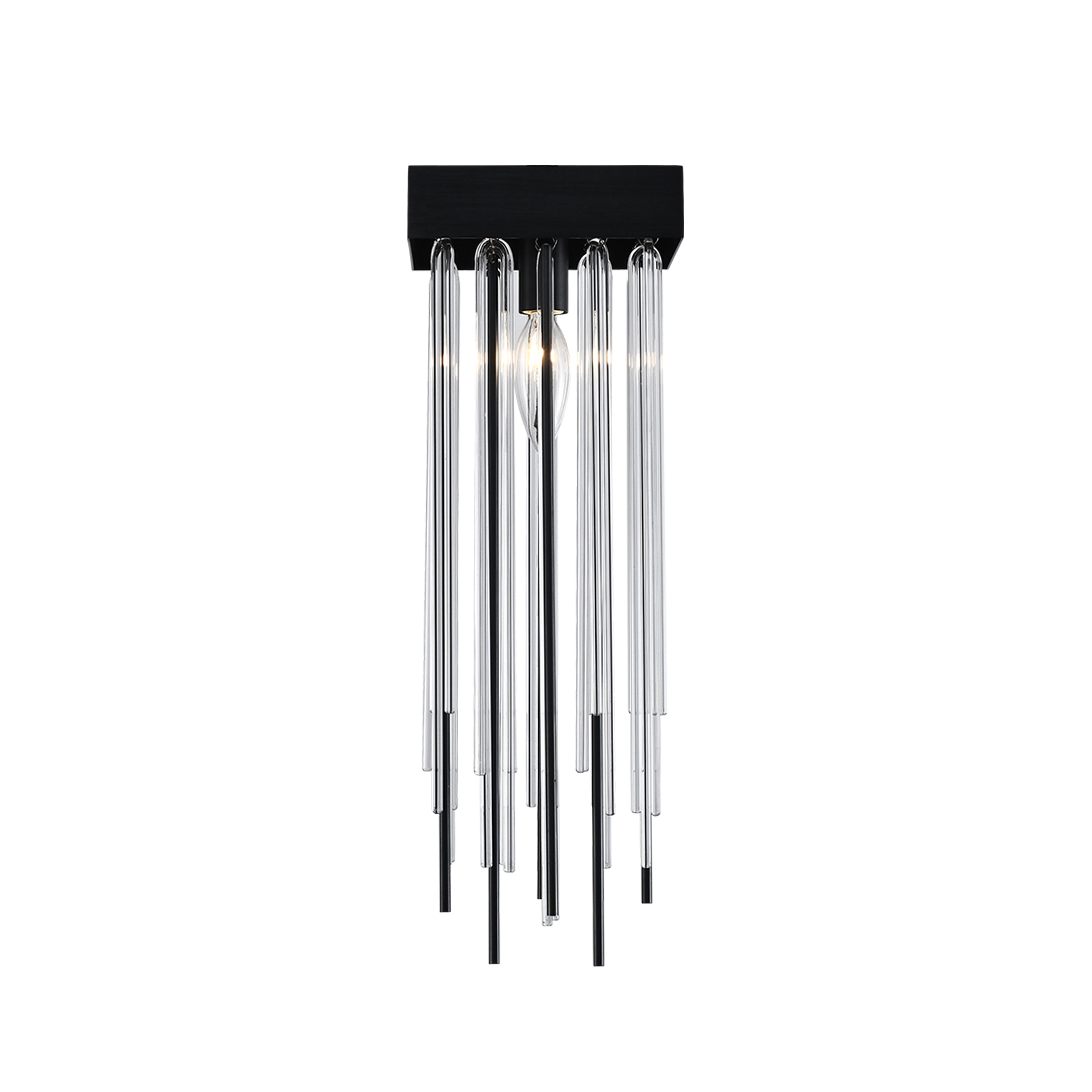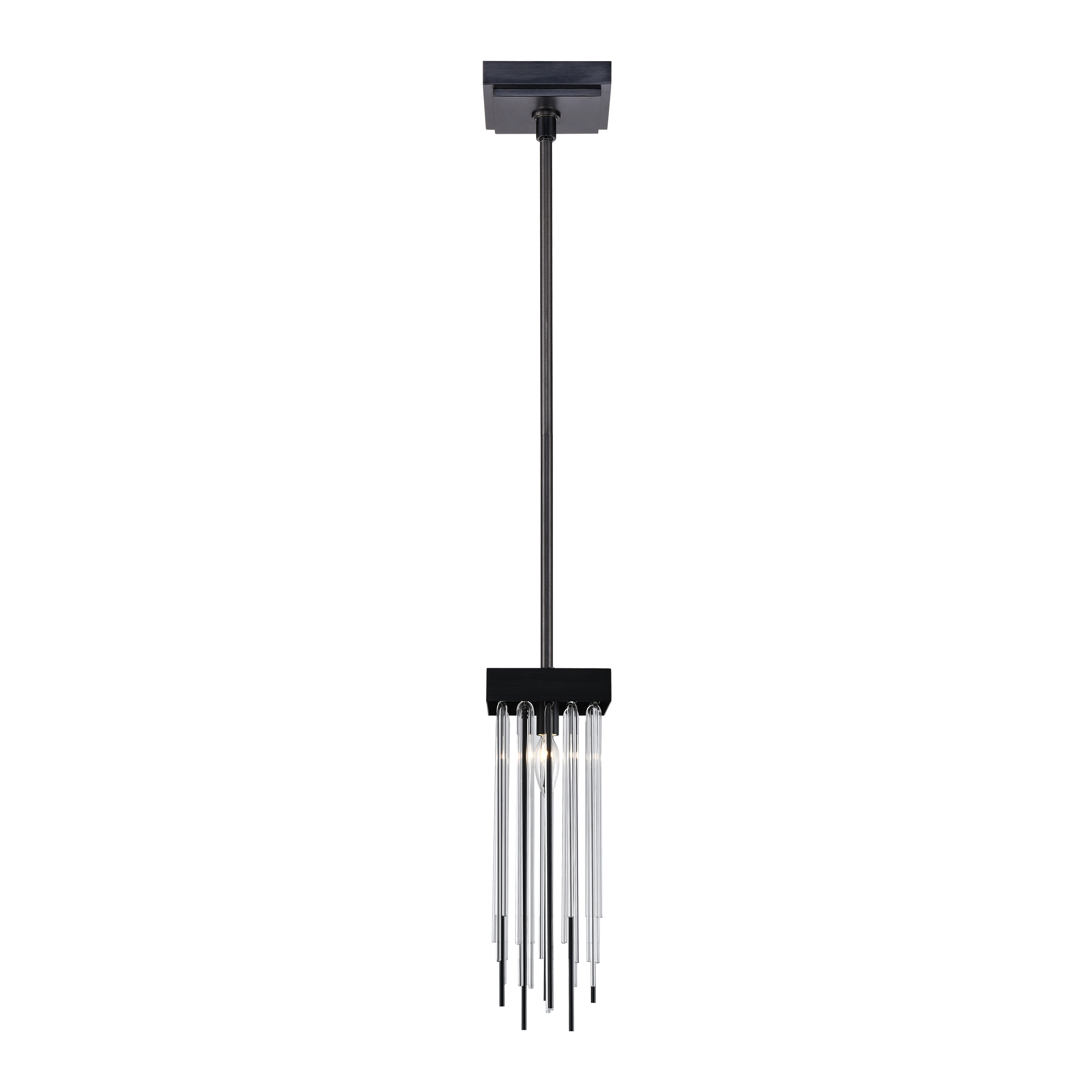 1-Light 6" Square Waterfall Glass Mini-Pendant Light with Multi-Sized Clear Curved Glass Stems combined with Solid Metal Stems. Refined Metal Details with our Sleek Satin Brushed Black Finish and Flush Mount Convertible.