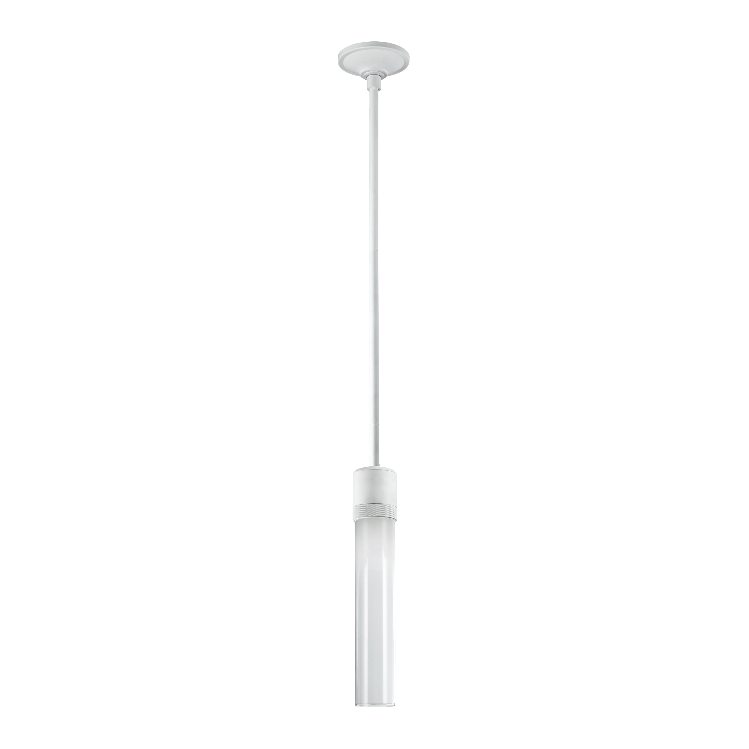 3" High End Vertical Cylindrical Pendant Light, 12" Clear Transparent Glass Shade and Our Chic Matte White Finish with Detailed Diamond Knurled Metal Band. Integrated Replaceable LED with 3CCT 3000K, 3500K and 4000K.