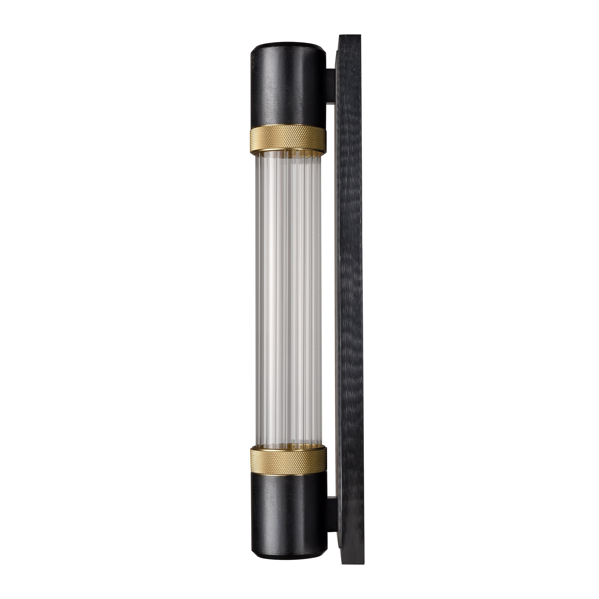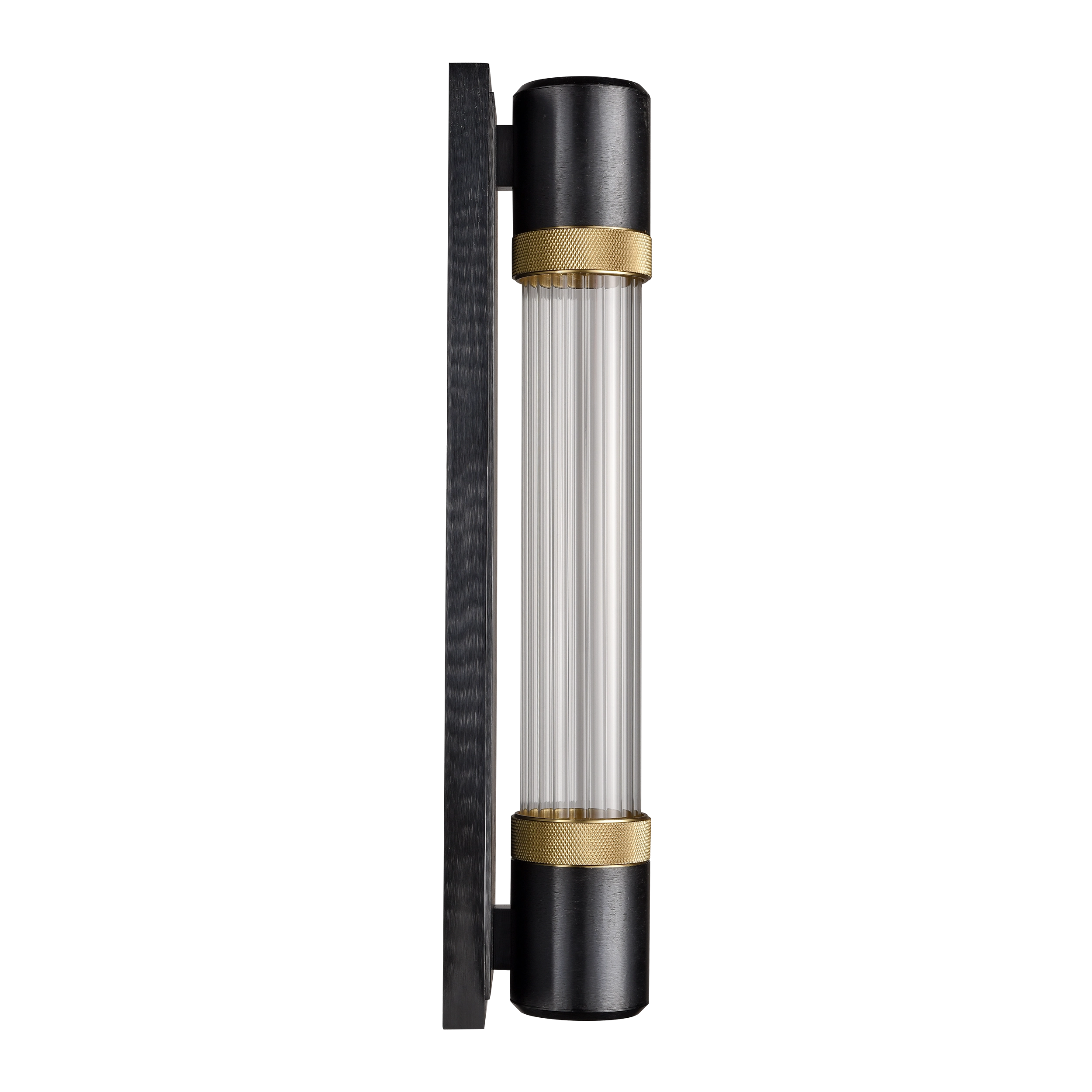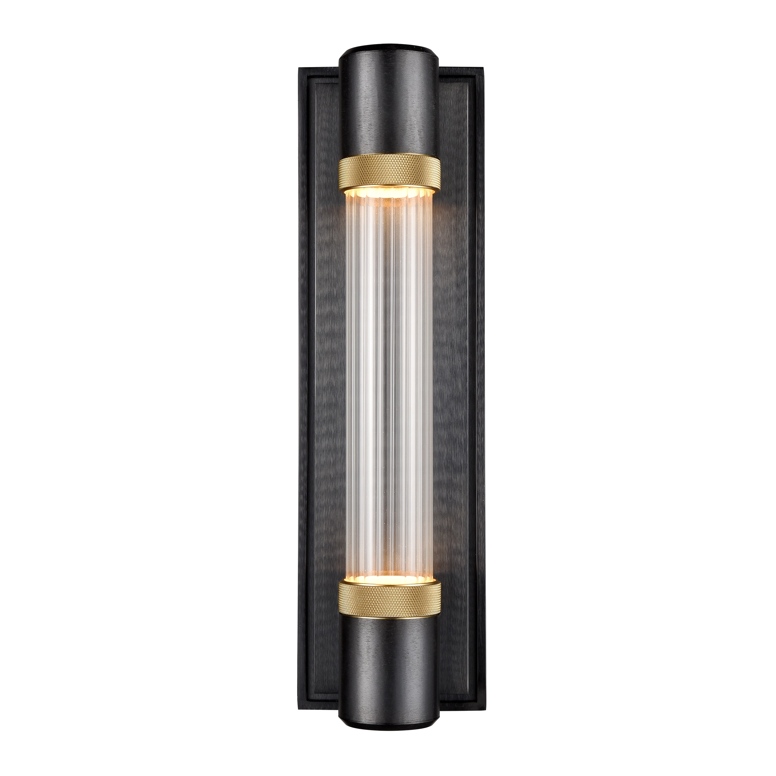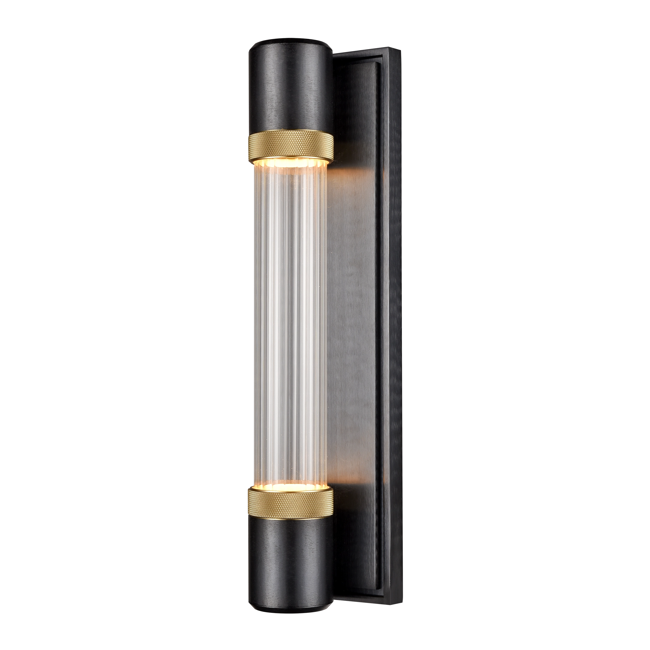 Zigrina 18″ Fluted Glass LED Wall Sconce in Black with Knurled Rings Brass