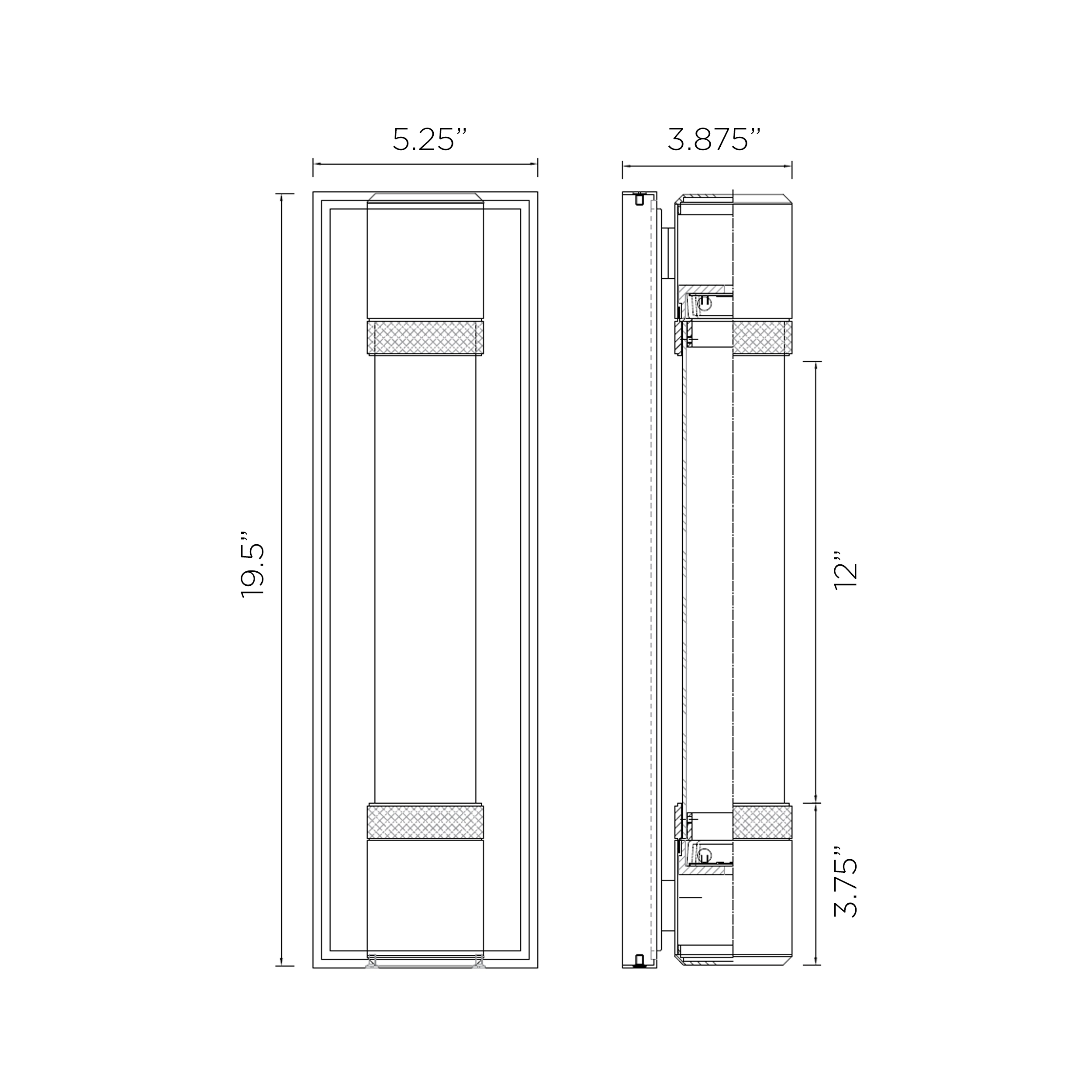 | Canopy | L-5.25" x H-19.5" x E-0.75" | Installed | W-5.25" x H-19.5" x E-3.875" |