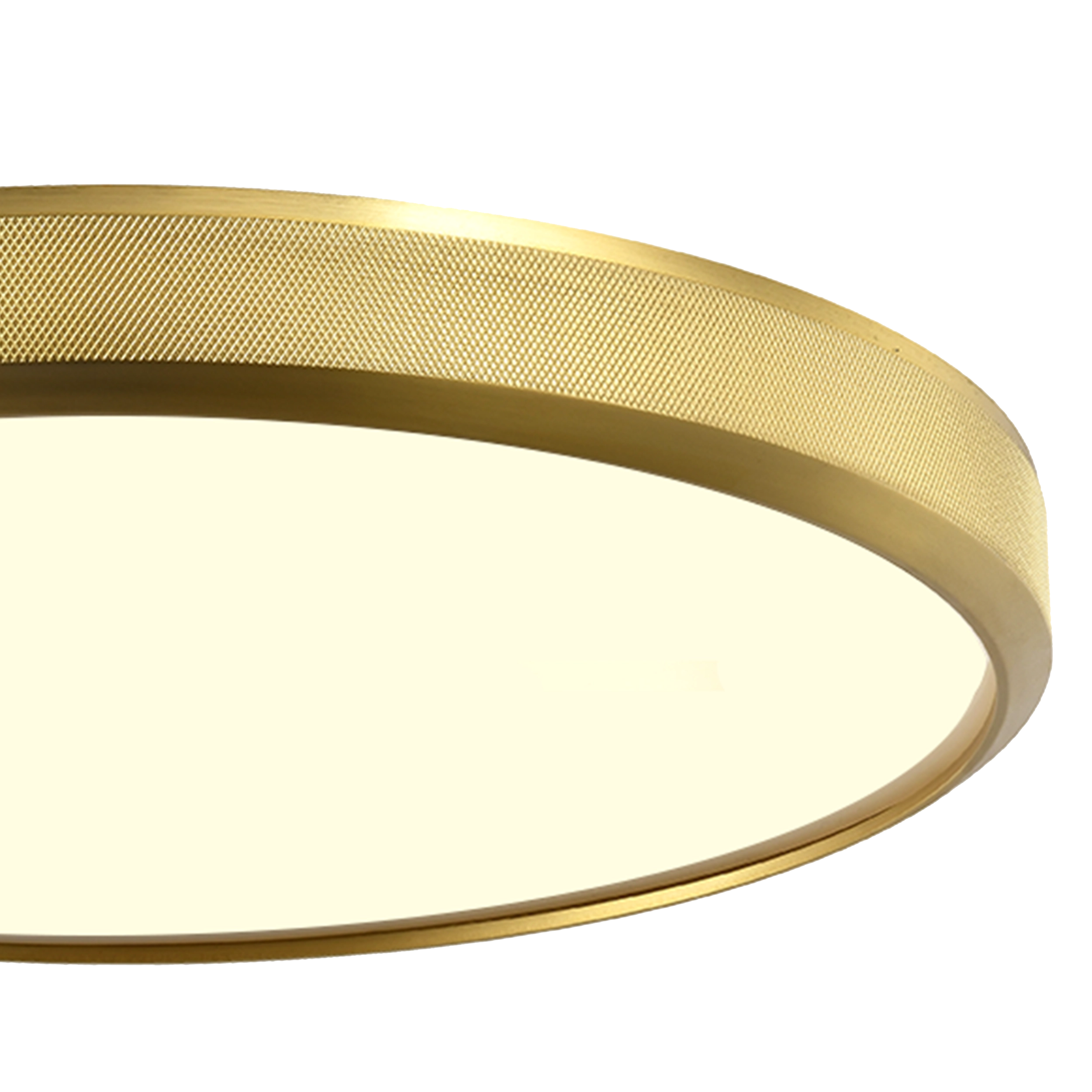24" High End Ceiling Flush Mount with Detailed Diamond Knurled Metal Band in our Premium Aged Brass Finish. Integrated Replaceable LED with 3CCT 3000K, 3500K and 4000K.